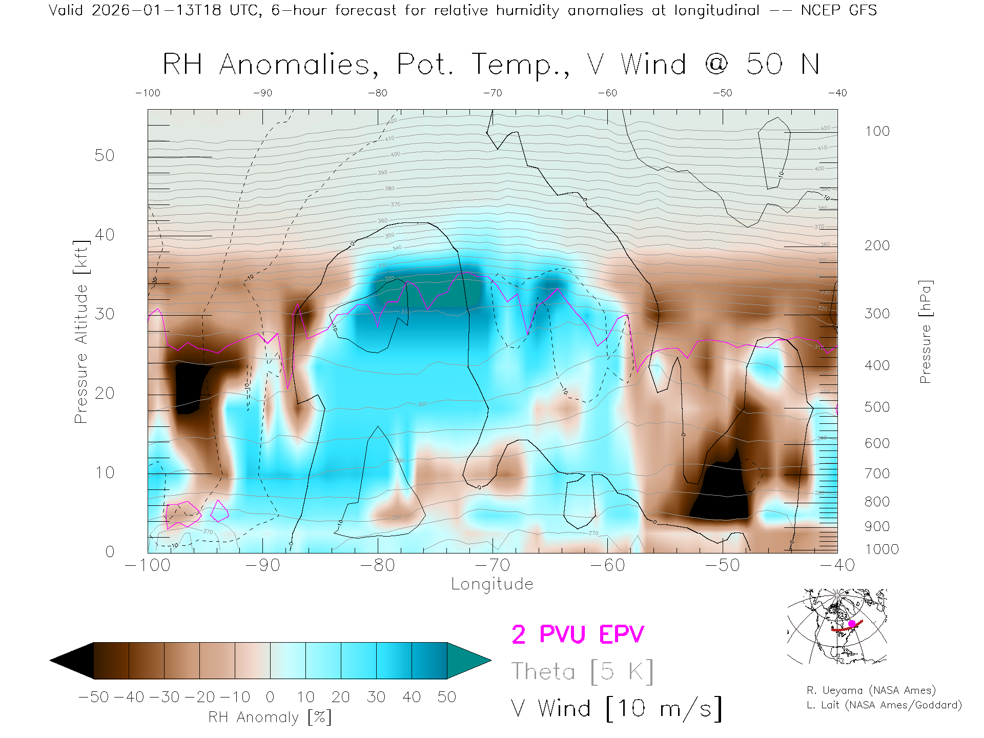 NCEP GFS Forecast Rel. Hum. X-Section (50 N)