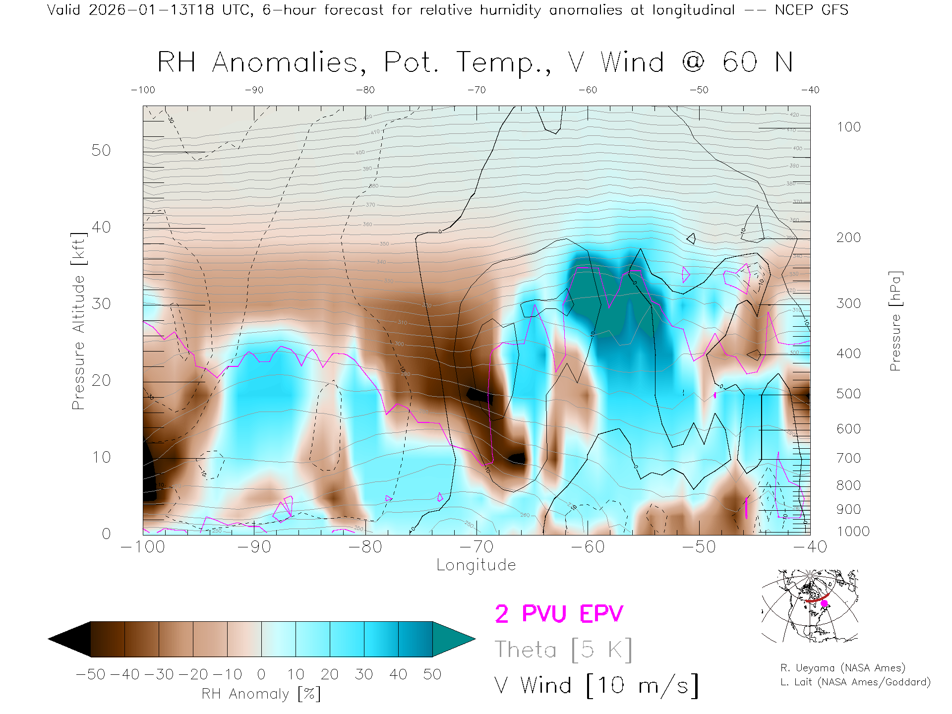 NCEP GFS Forecast Rel. Hum. X-Section (60 N)