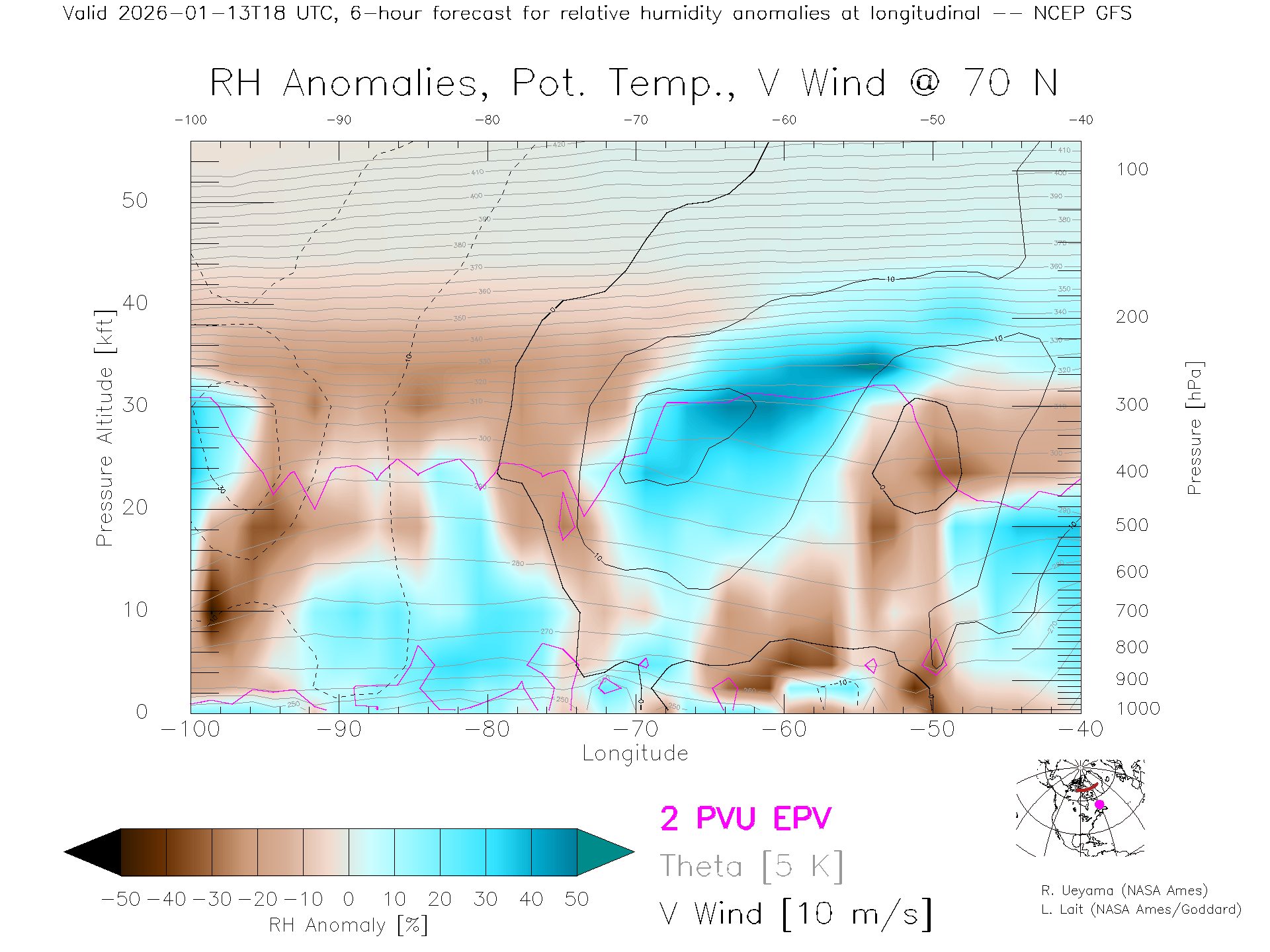 NCEP GFS Forecast Rel. Hum. X-Section (70 N)