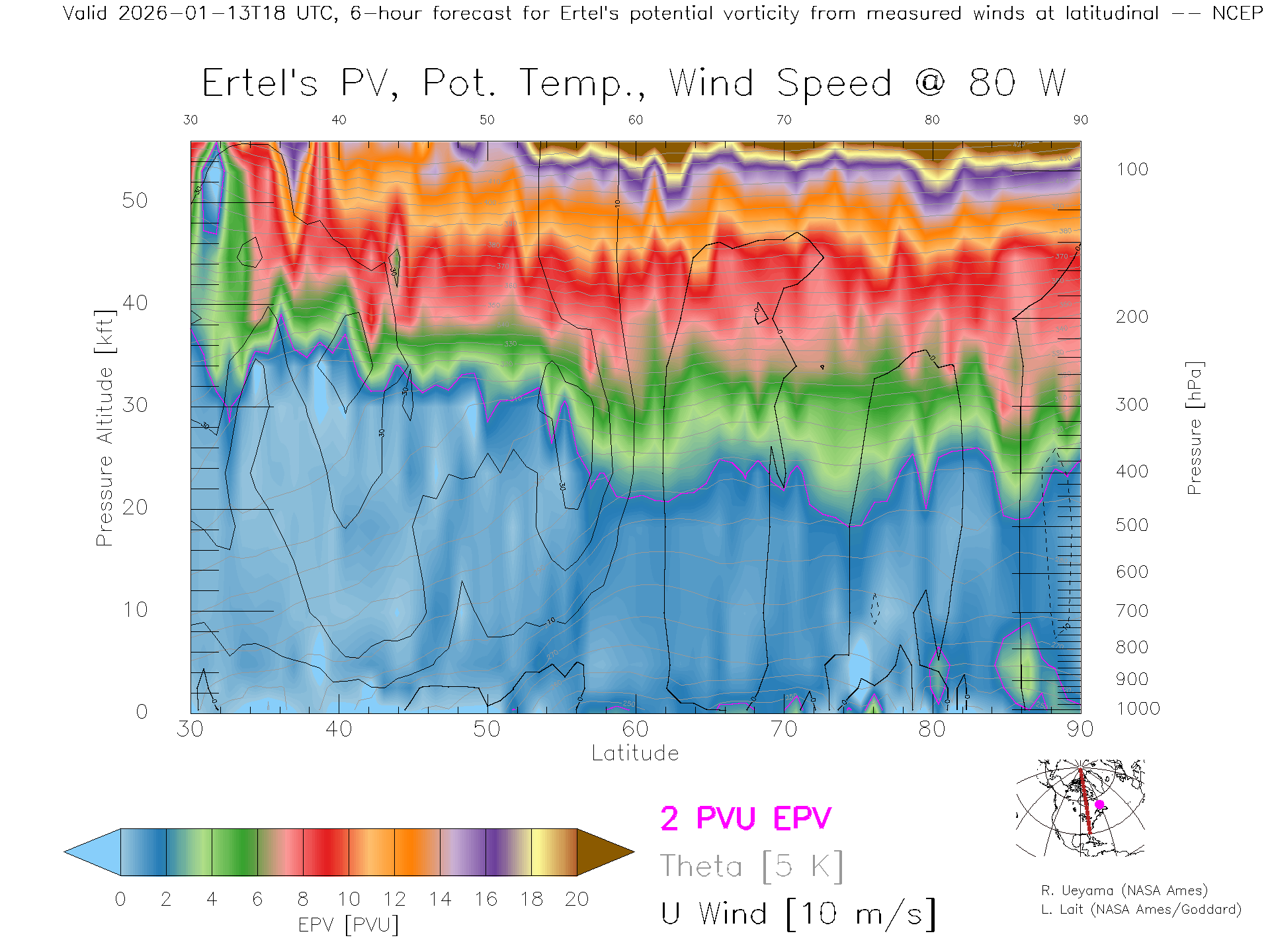 NCEP GFS Forecast PV X-Section (80 W)
