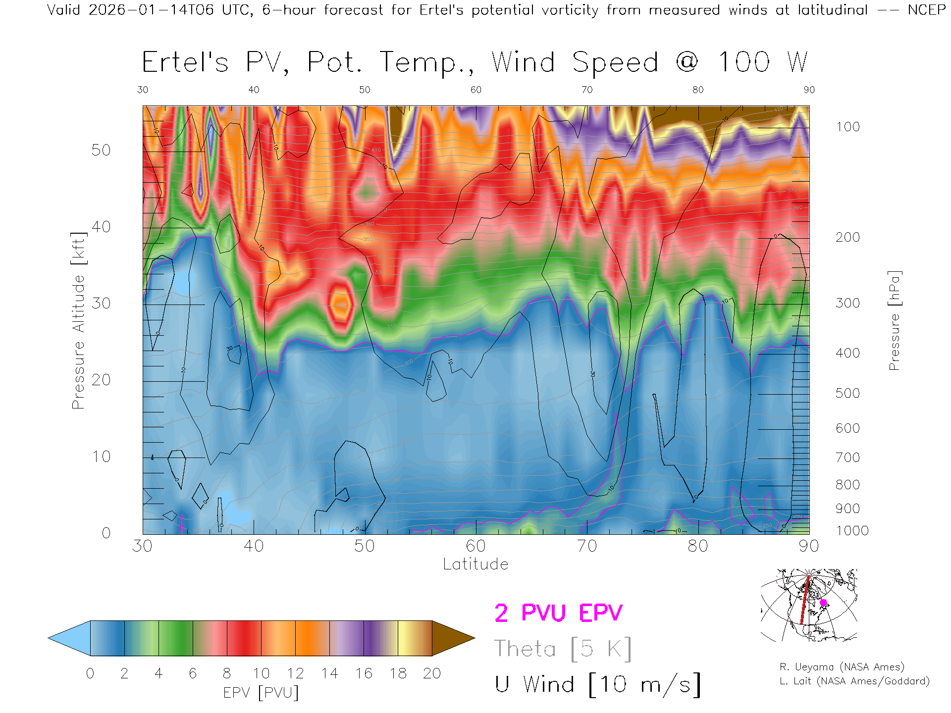 NCEP GFS Forecast PV X-Section (100 W)