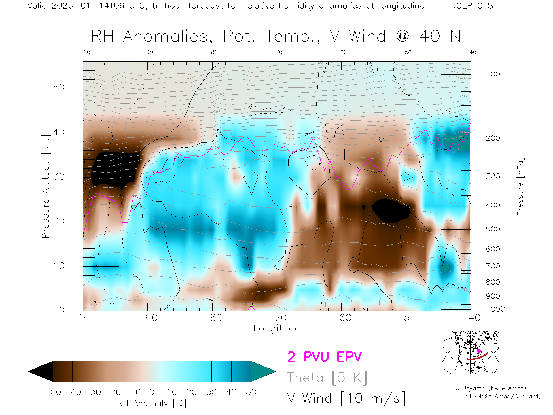 NCEP GFS Forecast Rel. Hum. X-Section (40 N)