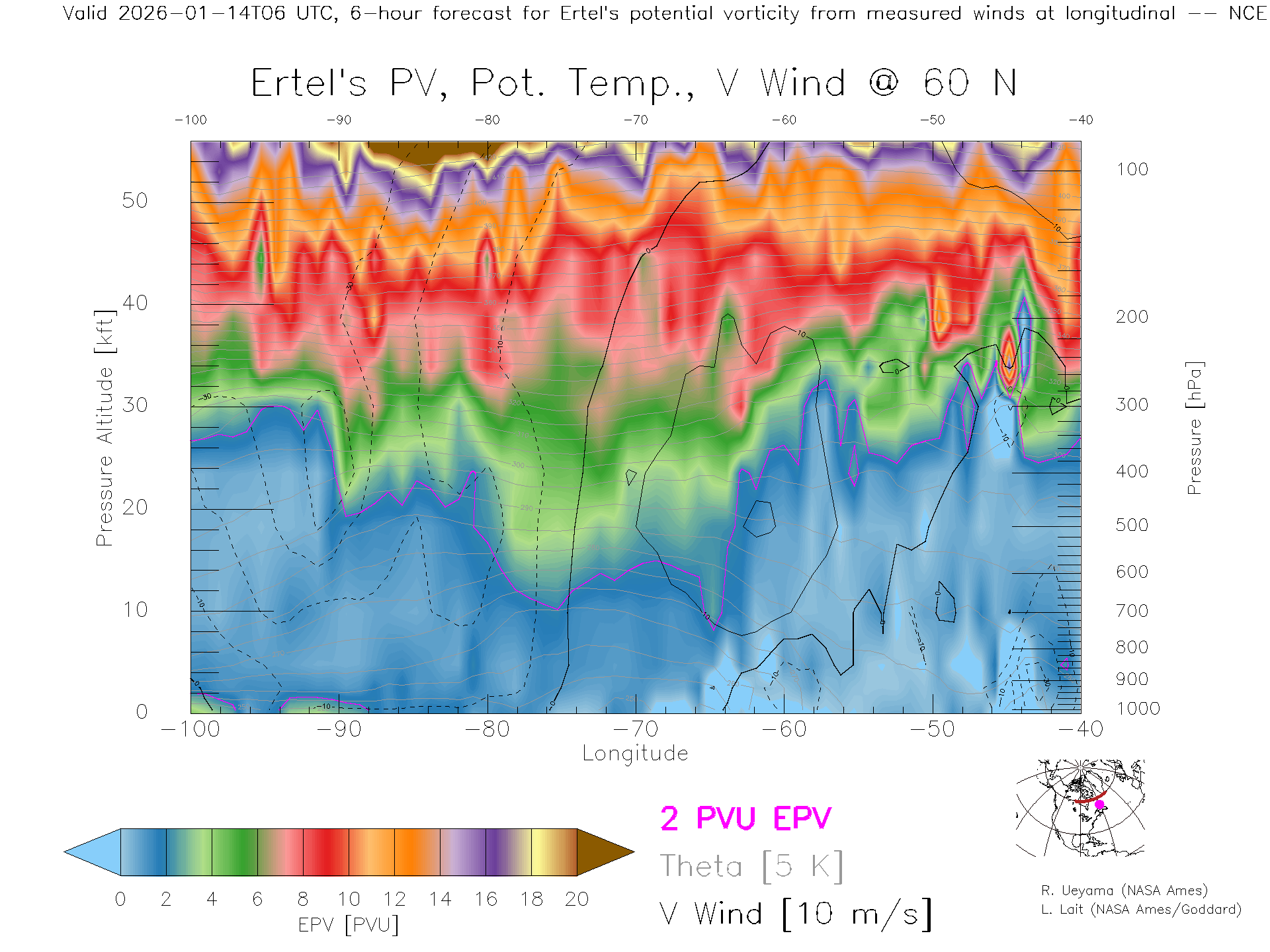 NCEP GFS Forecast PV X-Section (60 N)