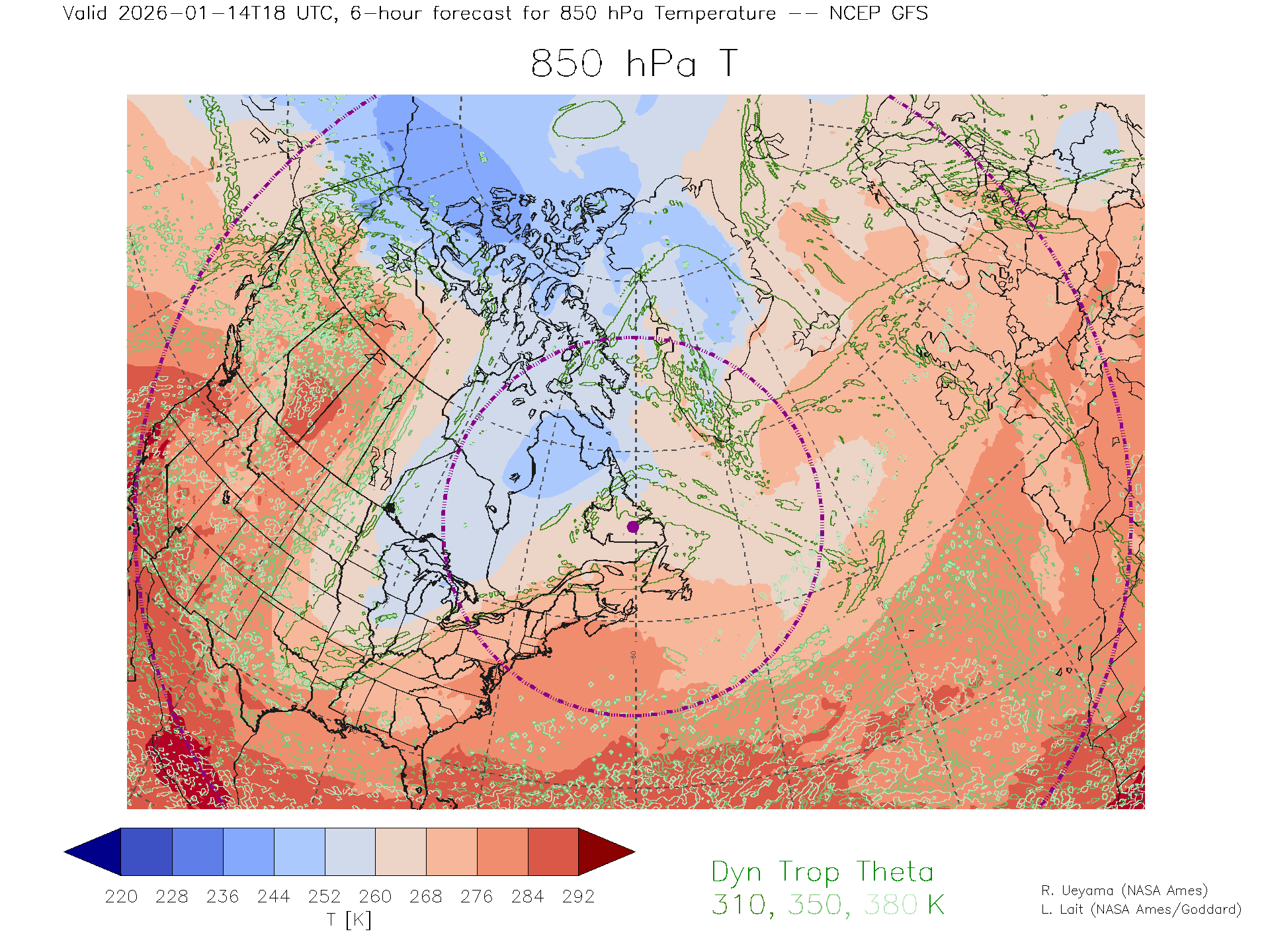 NCEP GFS Forecast 850 hPa Temp.