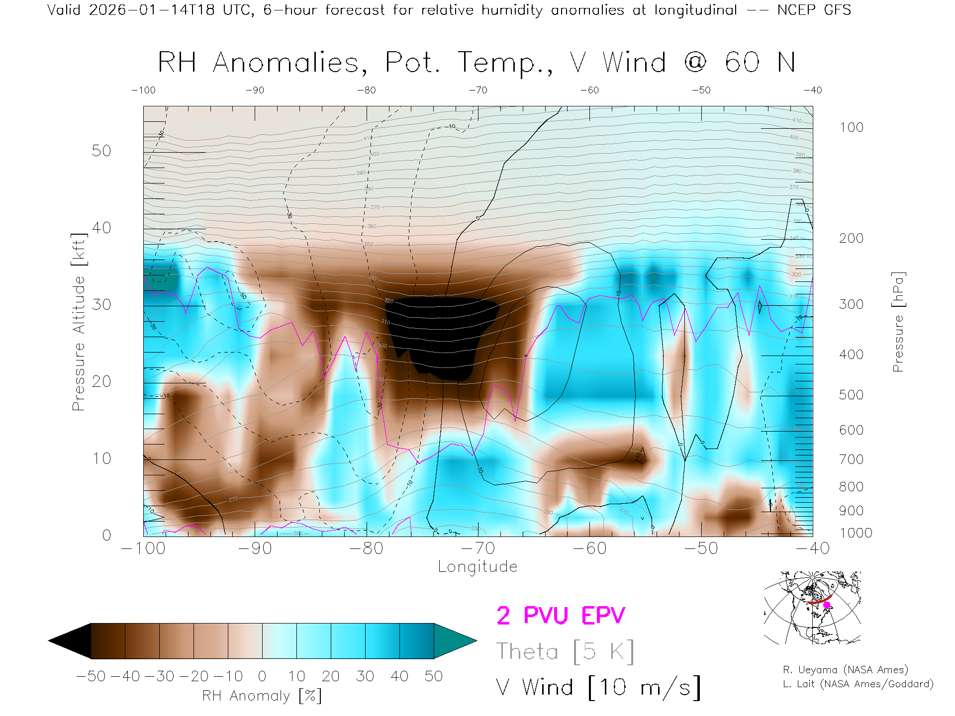 NCEP GFS Forecast Rel. Hum. X-Section (60 N)