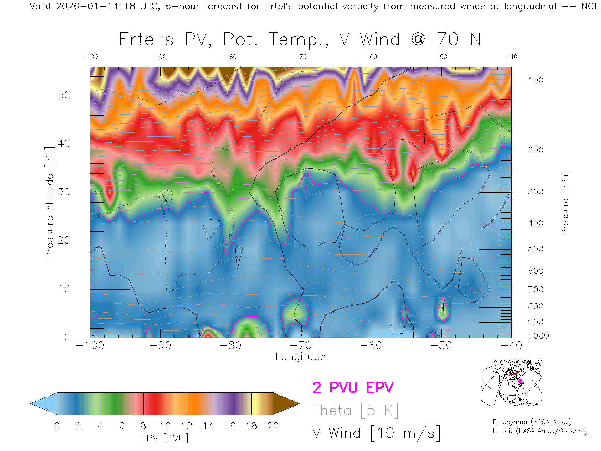 NCEP GFS Forecast PV X-Section (70 N)