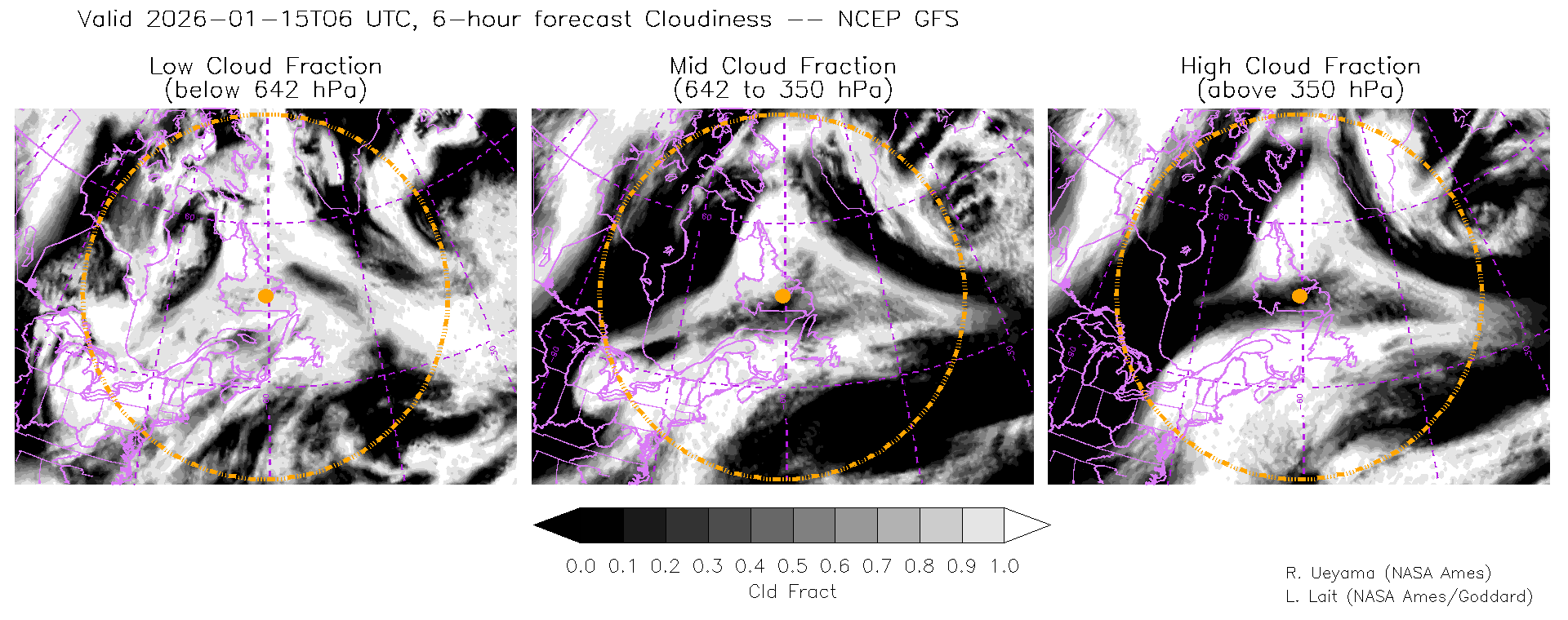 NCEP GFS Forecast Cloud Fraction (High, Mid, Low)