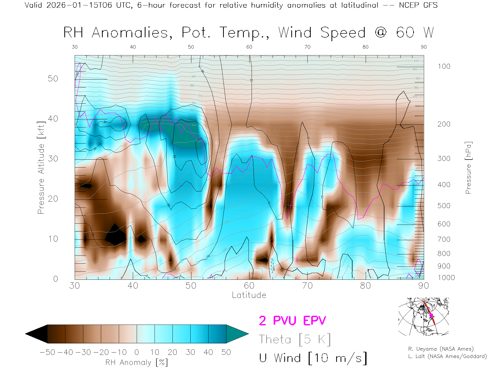 NCEP GFS Forecast Rel. Hum. X-Section (60 W)