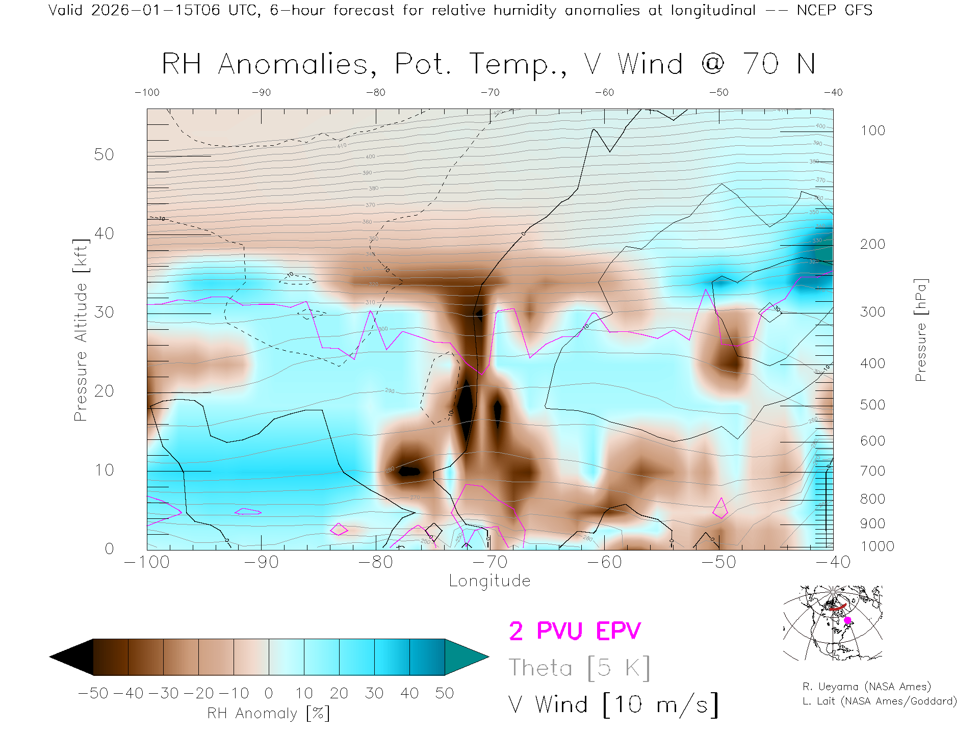 NCEP GFS Forecast Rel. Hum. X-Section (70 N)