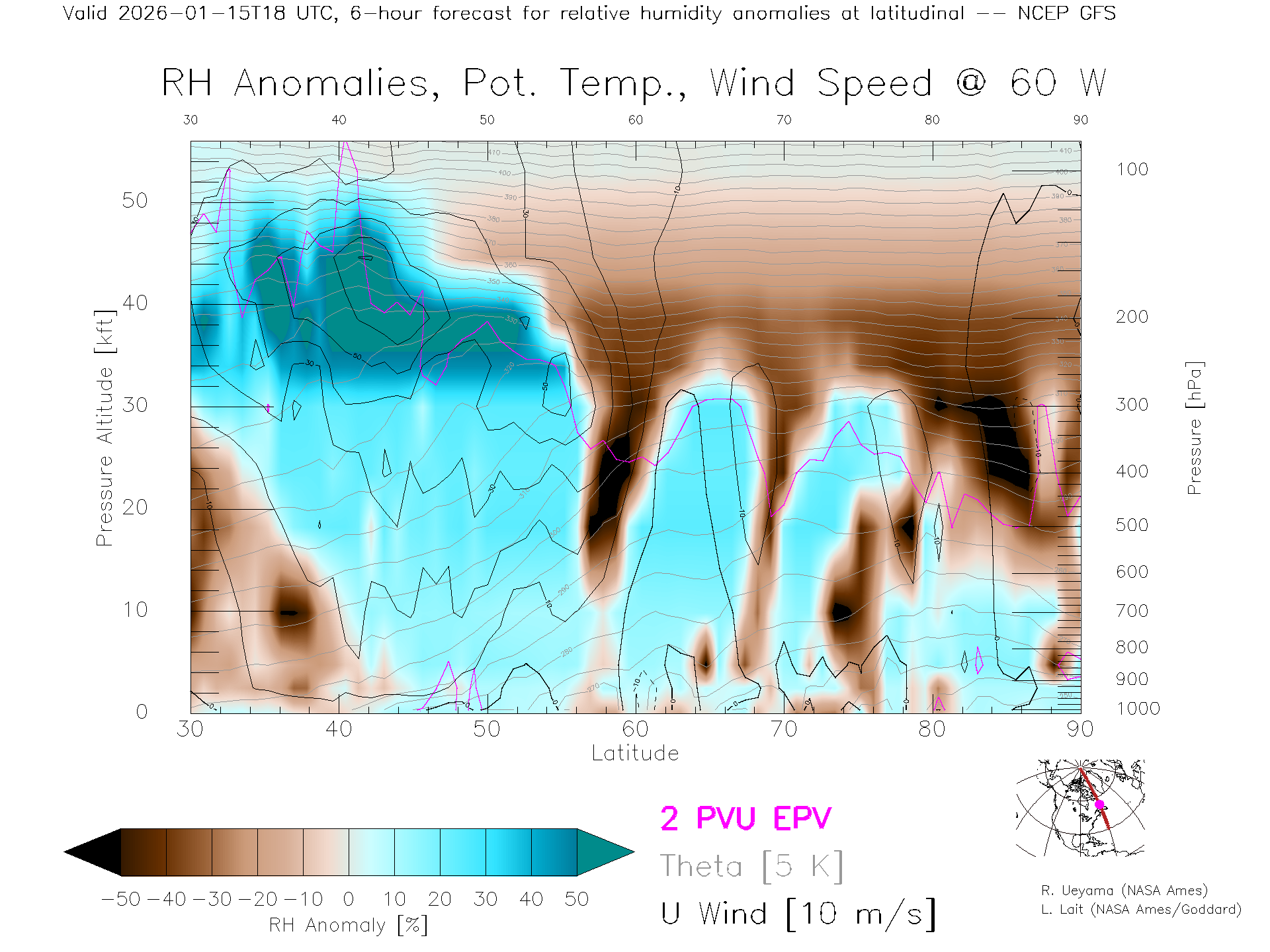NCEP GFS Forecast Rel. Hum. X-Section (60 W)
