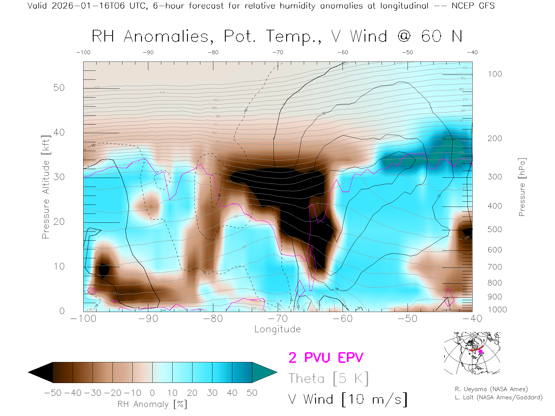 NCEP GFS Forecast Rel. Hum. X-Section (60 N)