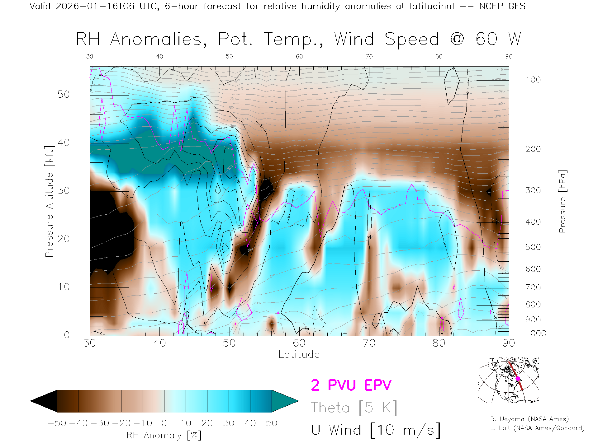 NCEP GFS Forecast Rel. Hum. X-Section (60 W)