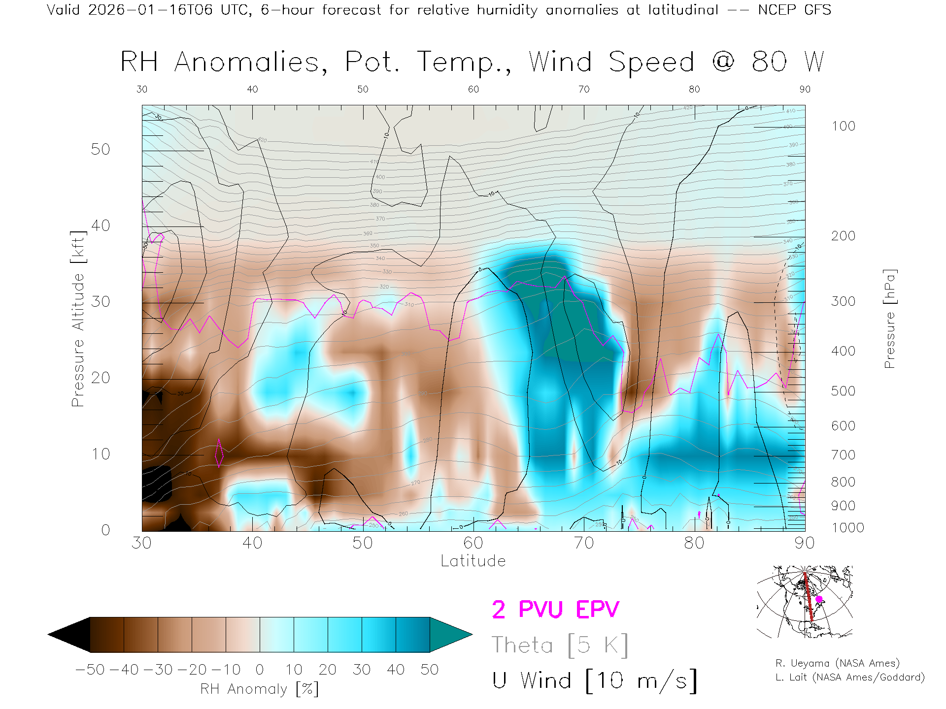 NCEP GFS Forecast Rel. Hum. X-Section (80 W)