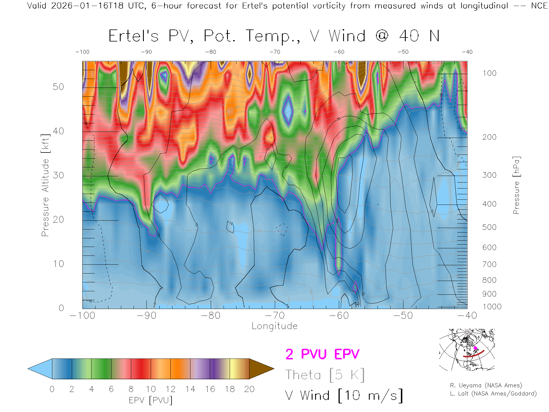 NCEP GFS Forecast PV X-Section (40 N)