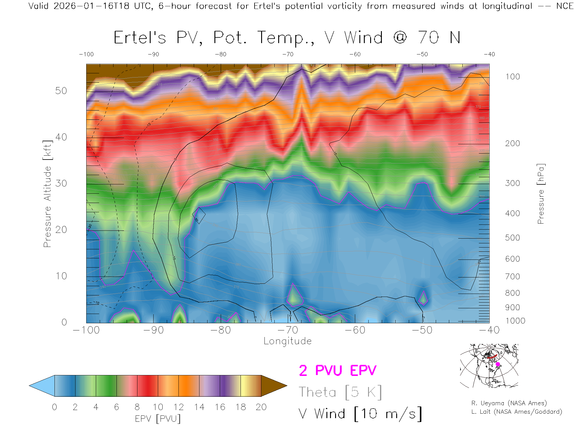 NCEP GFS Forecast PV X-Section (70 N)