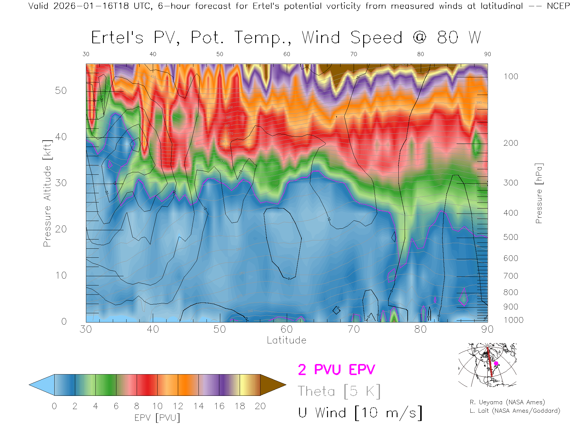 NCEP GFS Forecast PV X-Section (80 W)