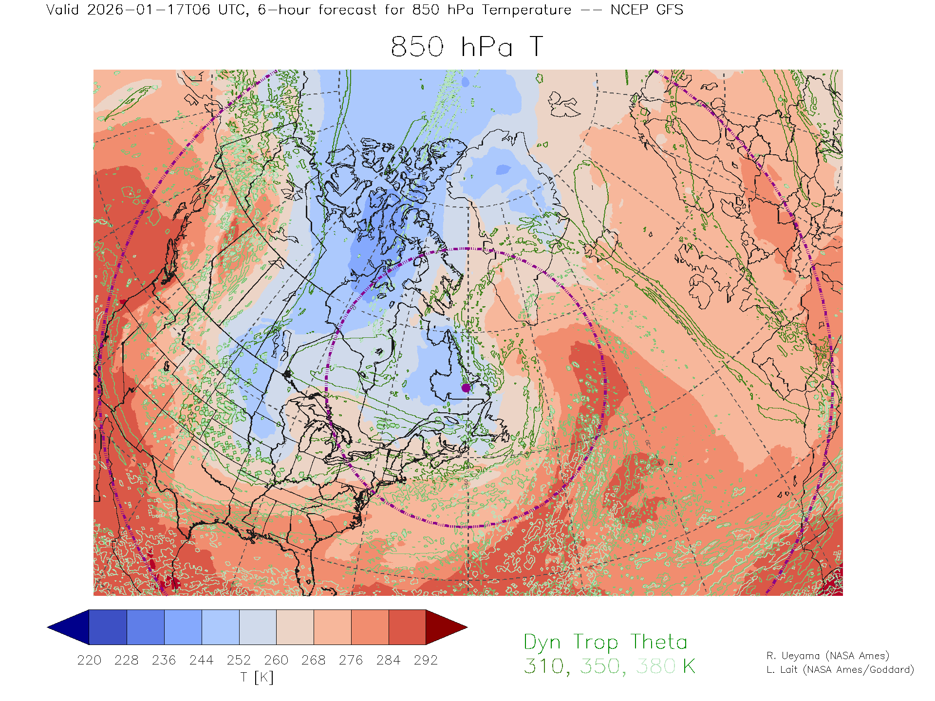 NCEP GFS Forecast 850 hPa Temp.