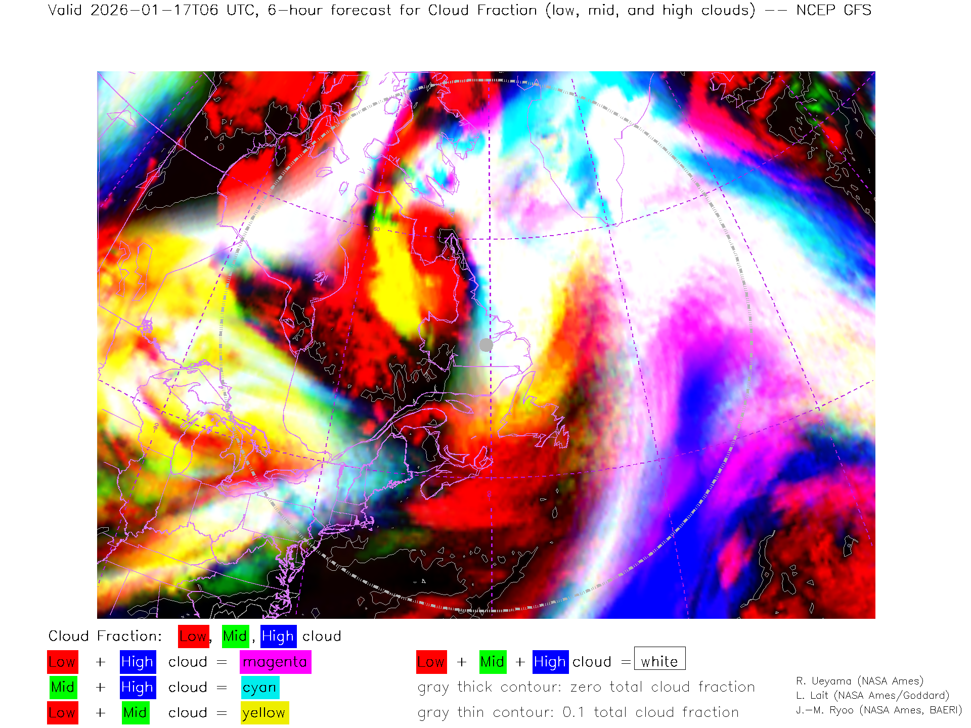 NCEP GFS Forecast Low-, Mid- and High-level Cloud Fraction