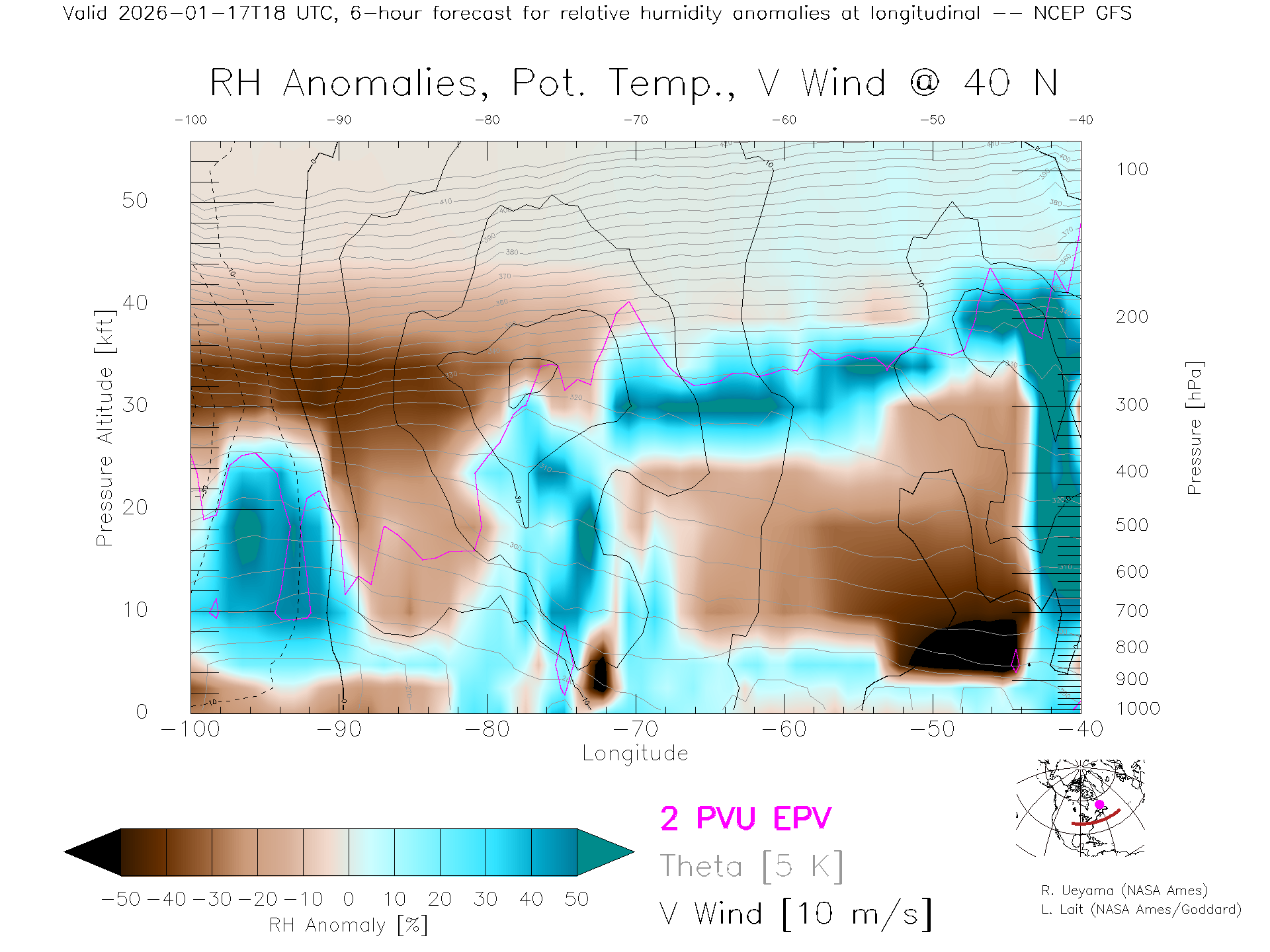 NCEP GFS Forecast Rel. Hum. X-Section (40 N)