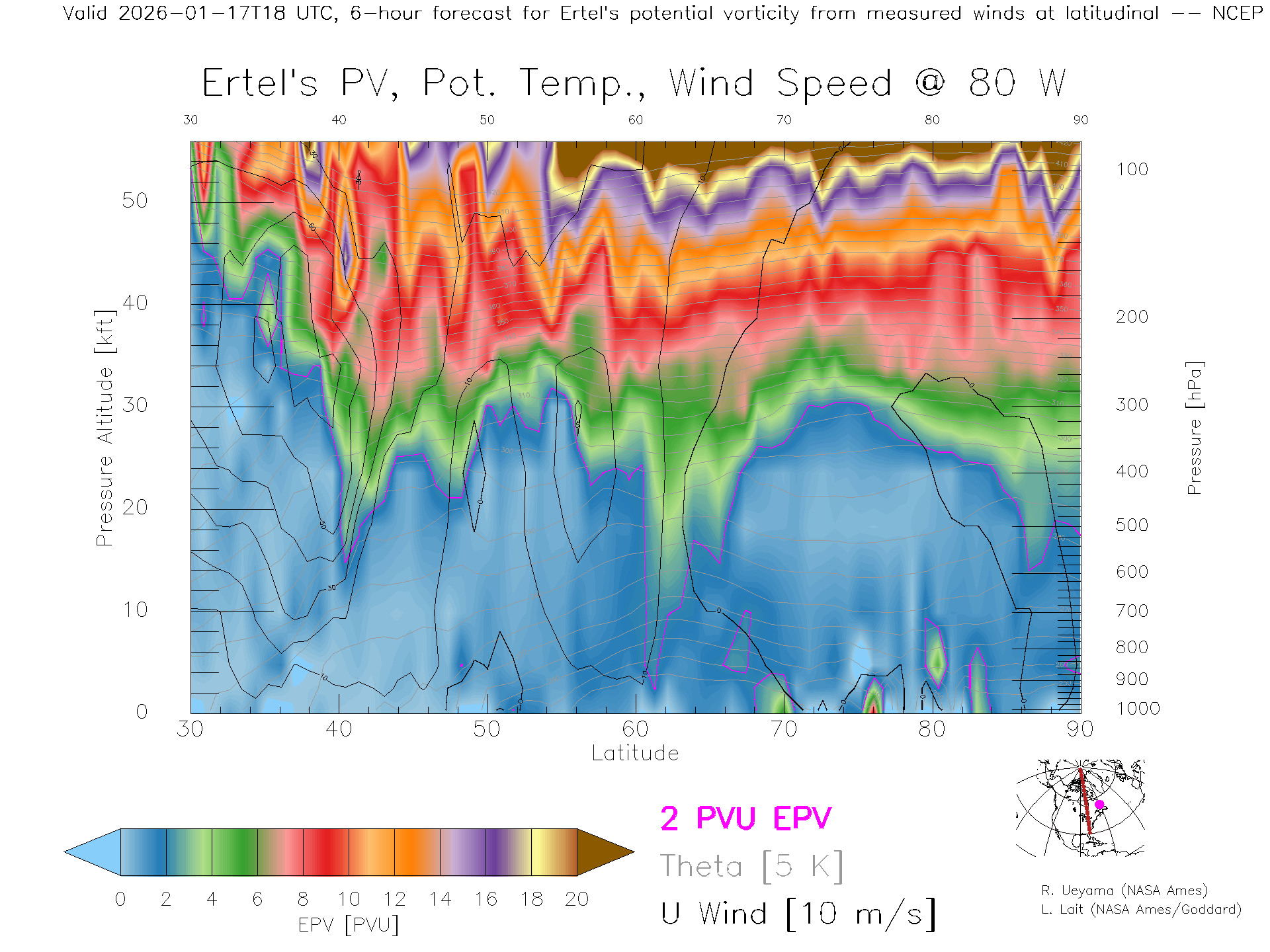 NCEP GFS Forecast PV X-Section (80 W)