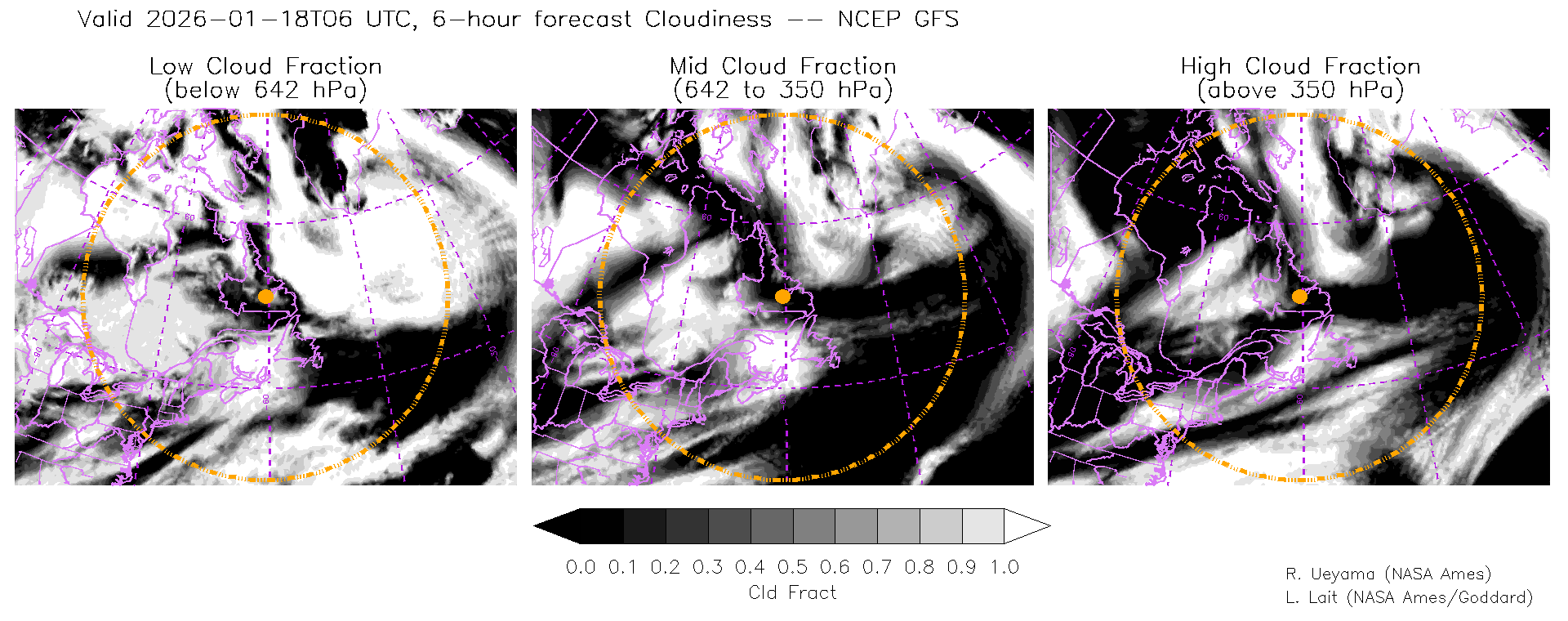 NCEP GFS Forecast Cloud Fraction (High, Mid, Low)