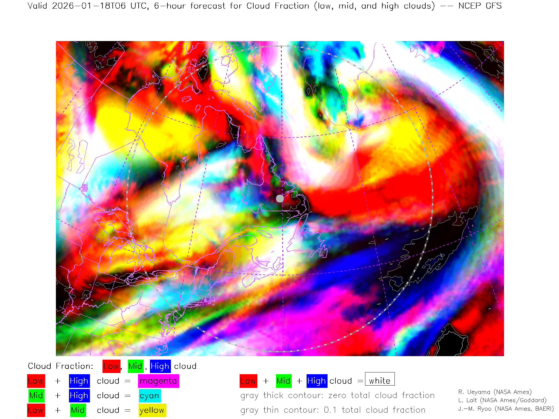 NCEP GFS Forecast Low-, Mid- and High-level Cloud Fraction