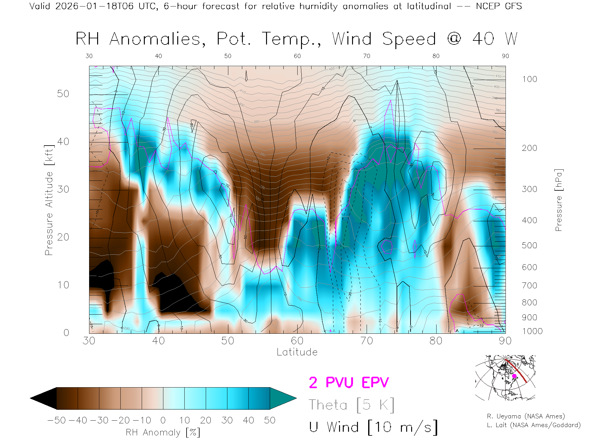 NCEP GFS Forecast Rel. Hum. X-Section (40 W)