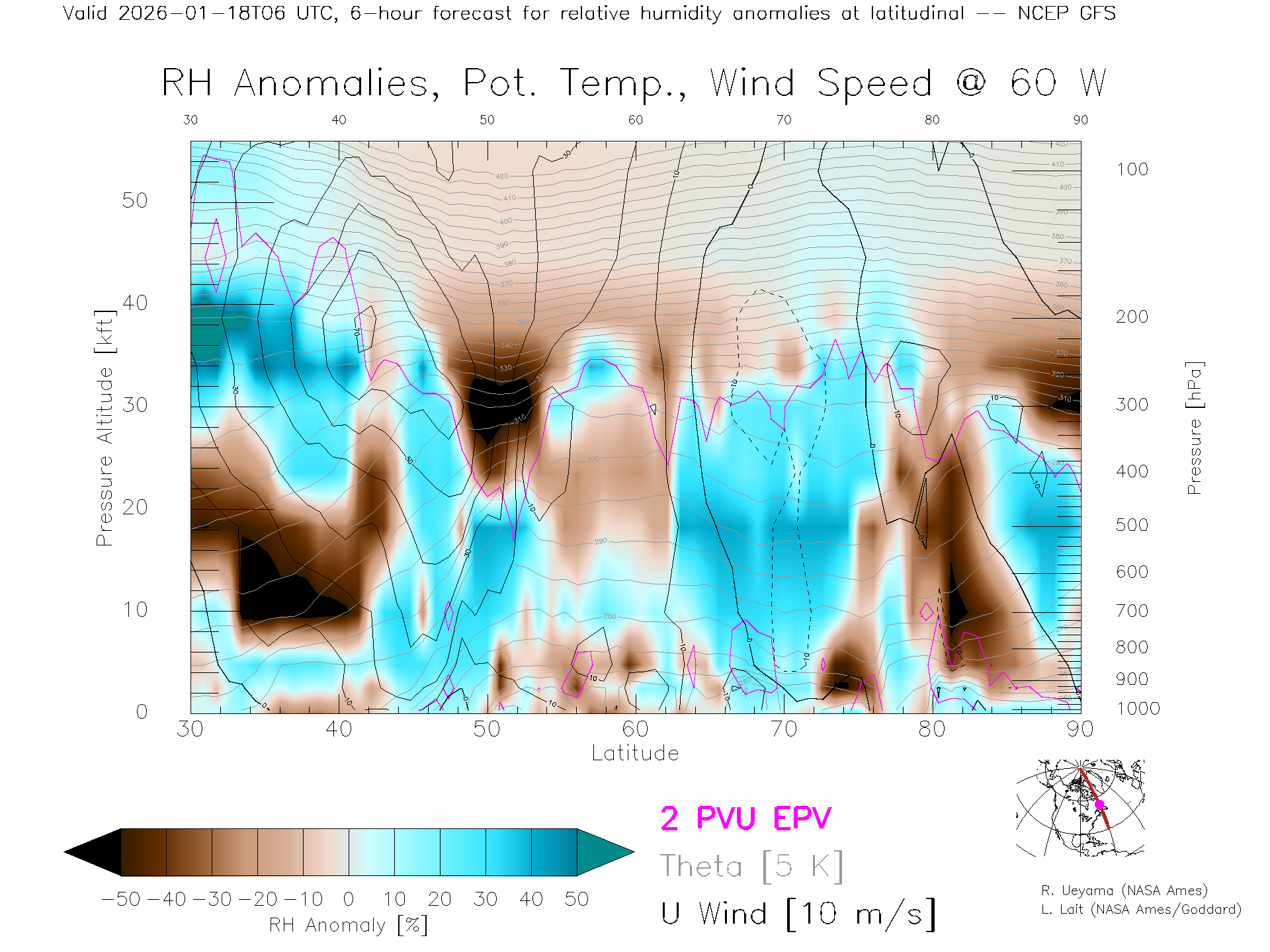 NCEP GFS Forecast Rel. Hum. X-Section (60 W)