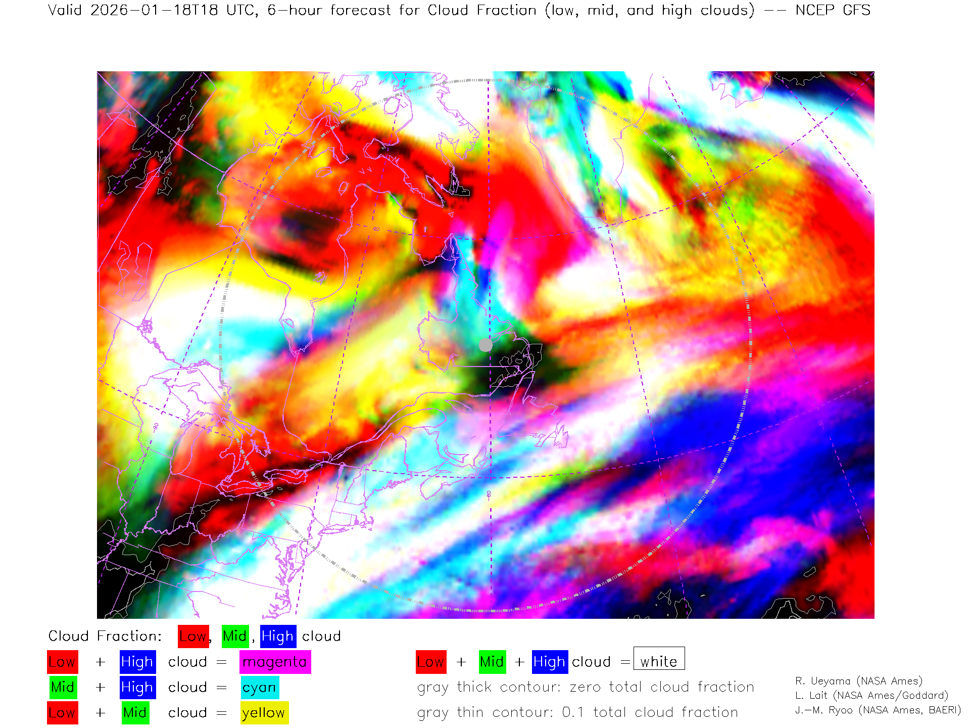 NCEP GFS Forecast Low-, Mid- and High-level Cloud Fraction