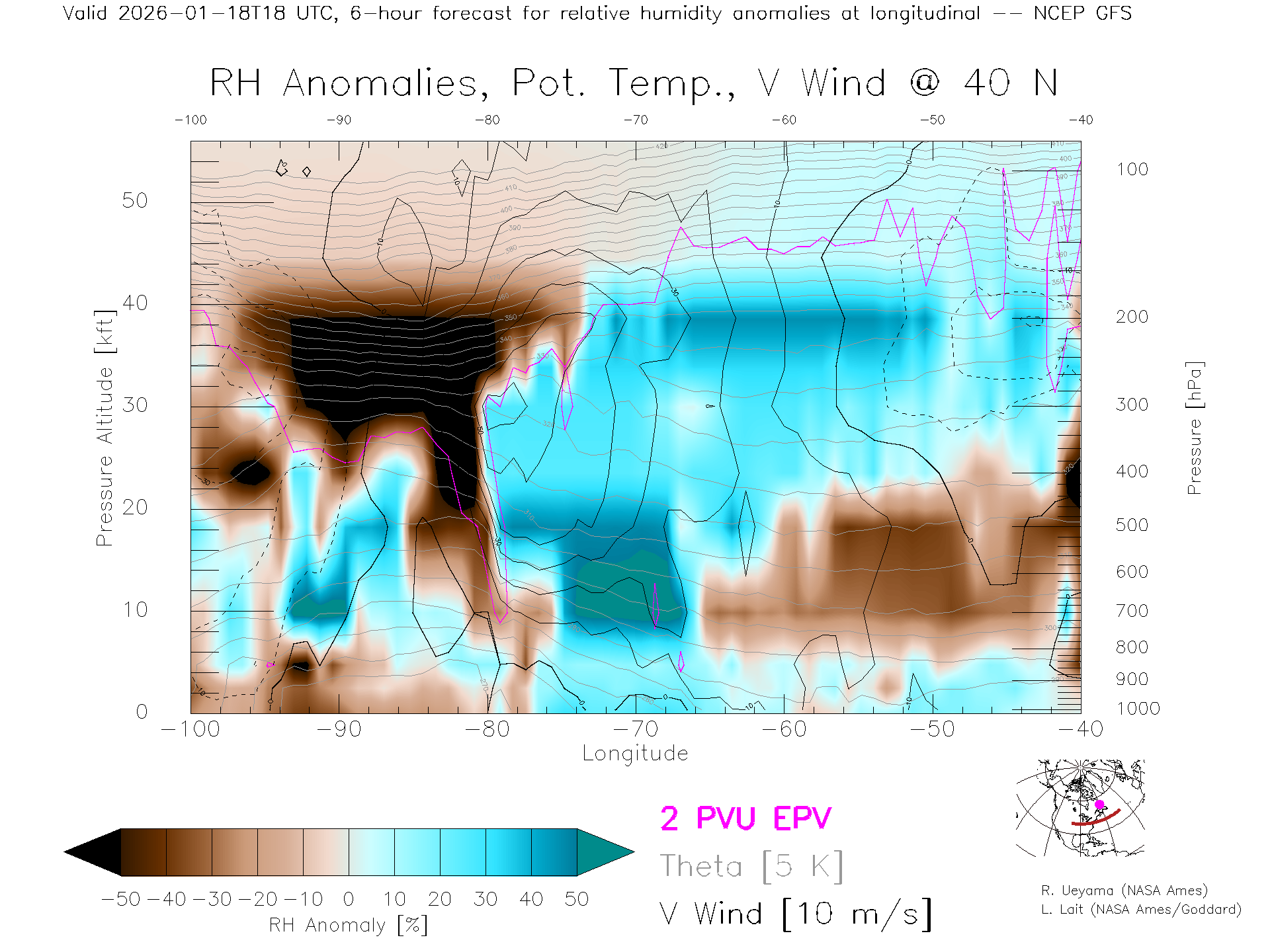 NCEP GFS Forecast Rel. Hum. X-Section (40 N)