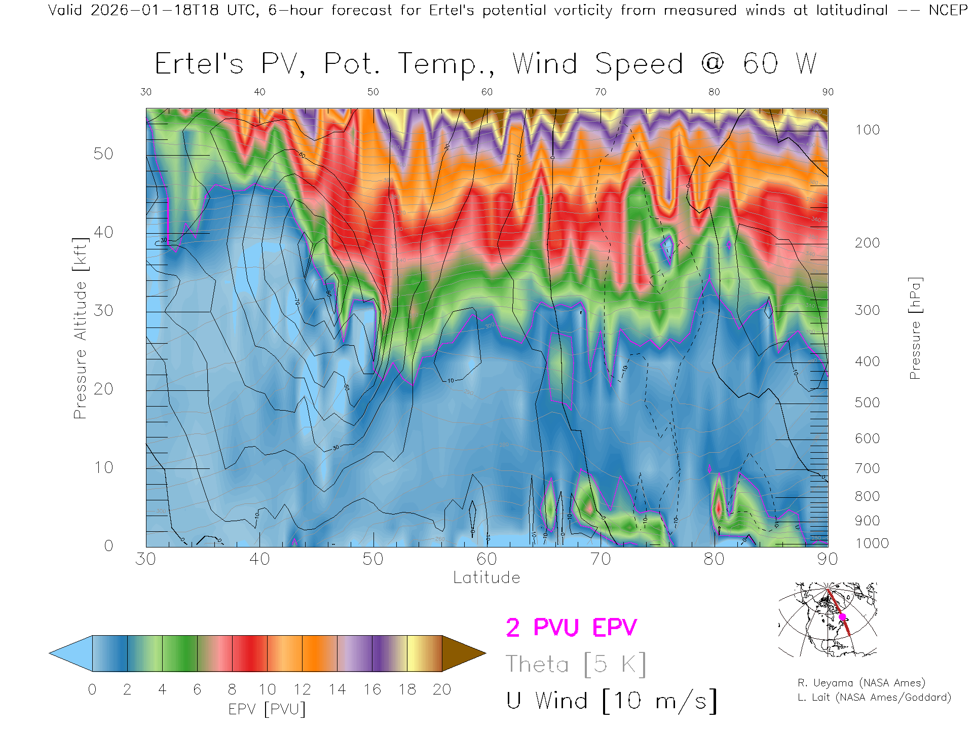 NCEP GFS Forecast PV X-Section (60 W)