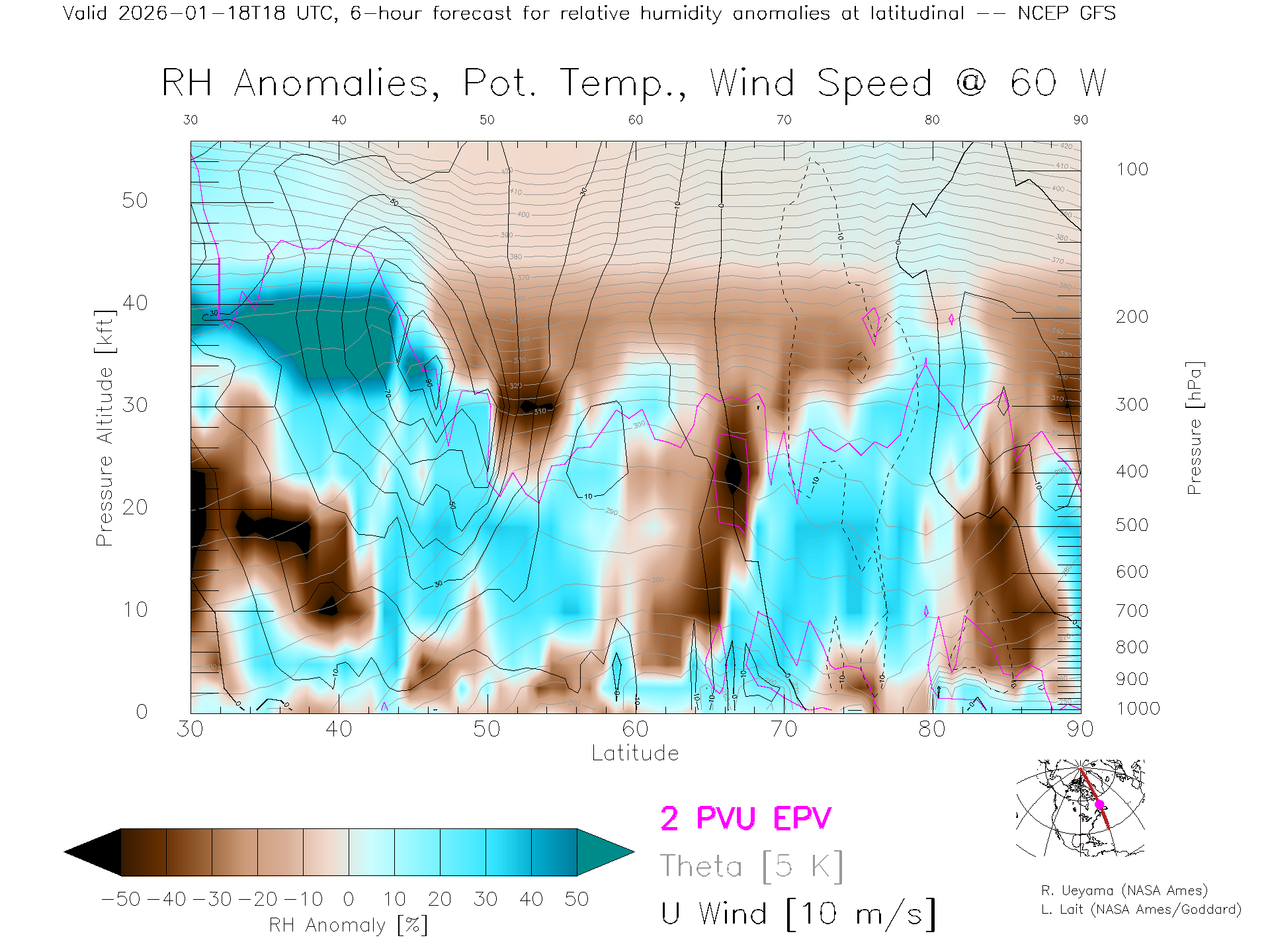 NCEP GFS Forecast Rel. Hum. X-Section (60 W)