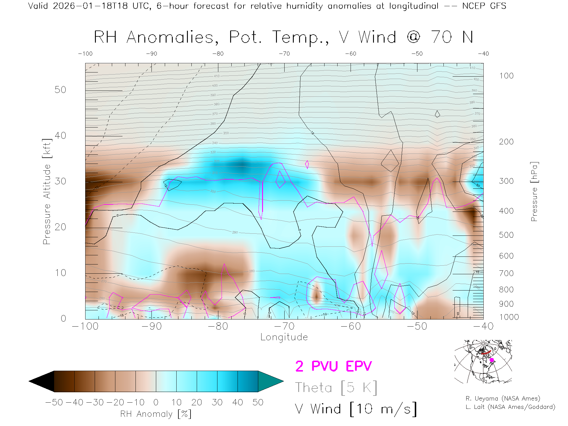 NCEP GFS Forecast Rel. Hum. X-Section (70 N)