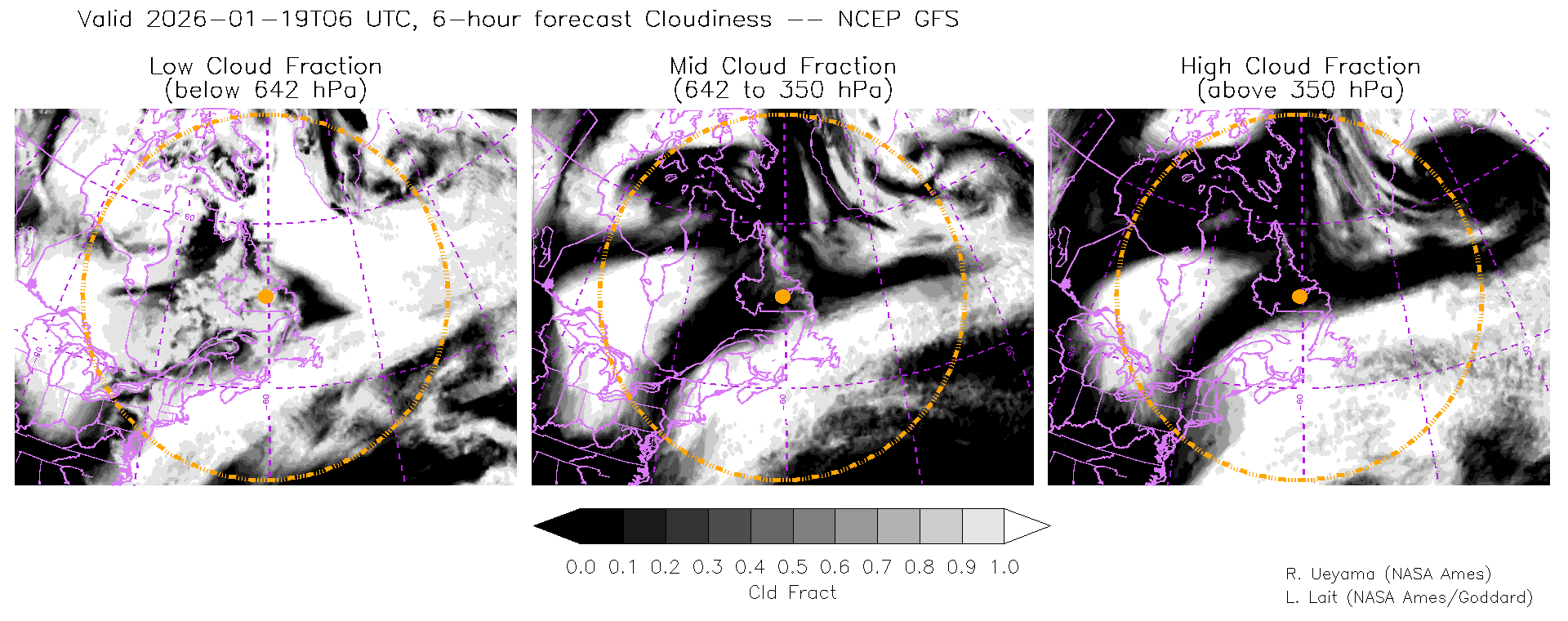 NCEP GFS Forecast Cloud Fraction (High, Mid, Low)