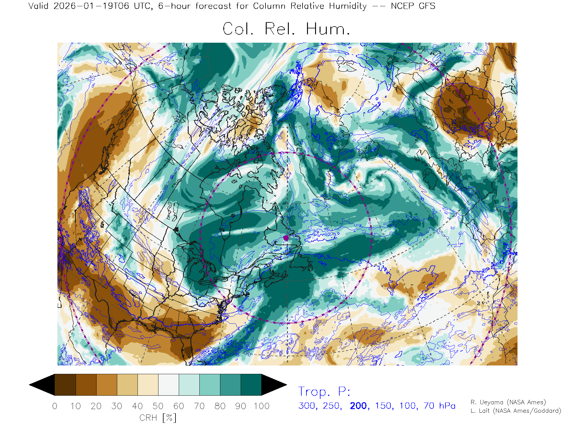NCEP GFS Forecast Column Rel. Humidity