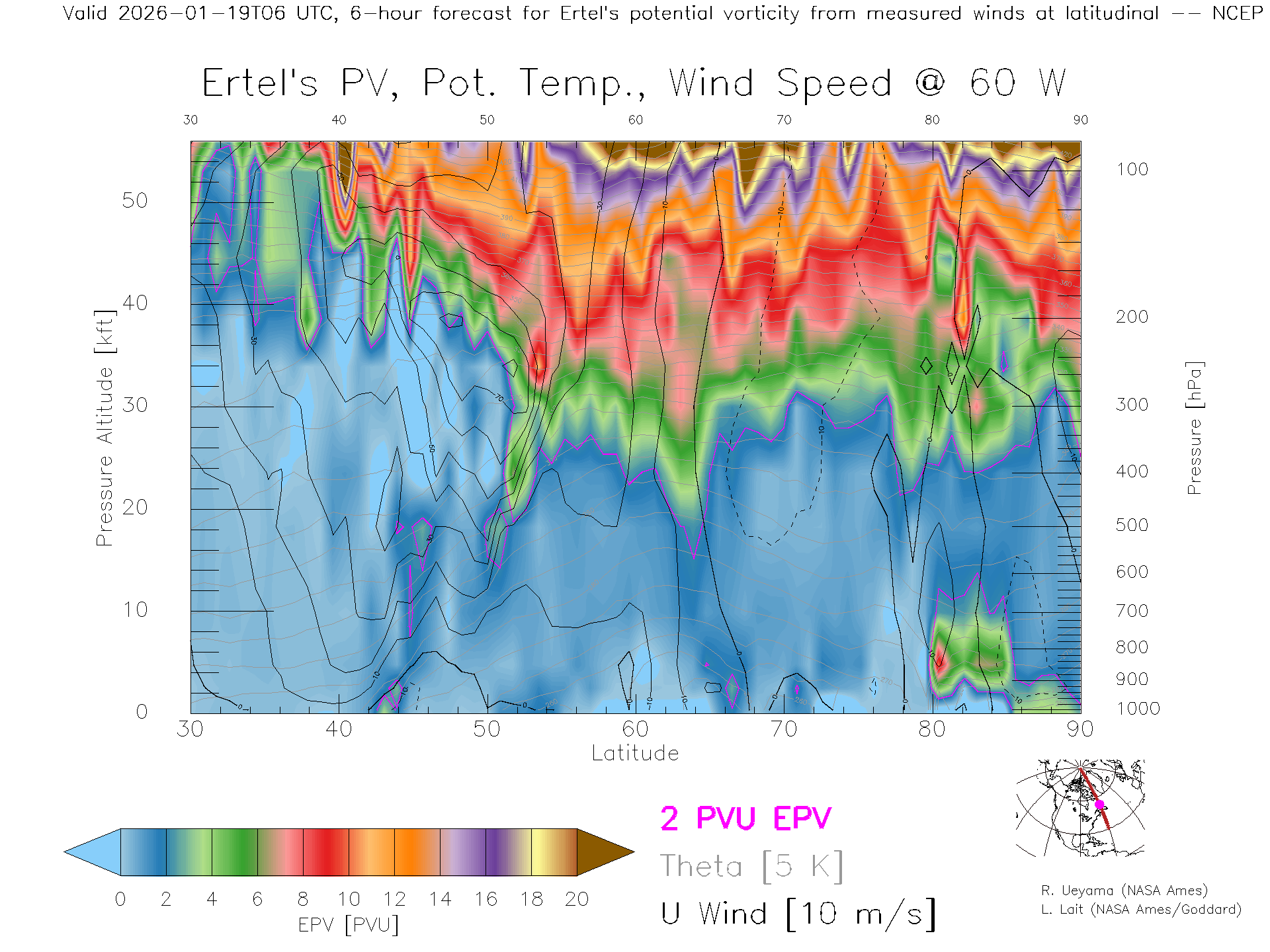 NCEP GFS Forecast PV X-Section (60 W)