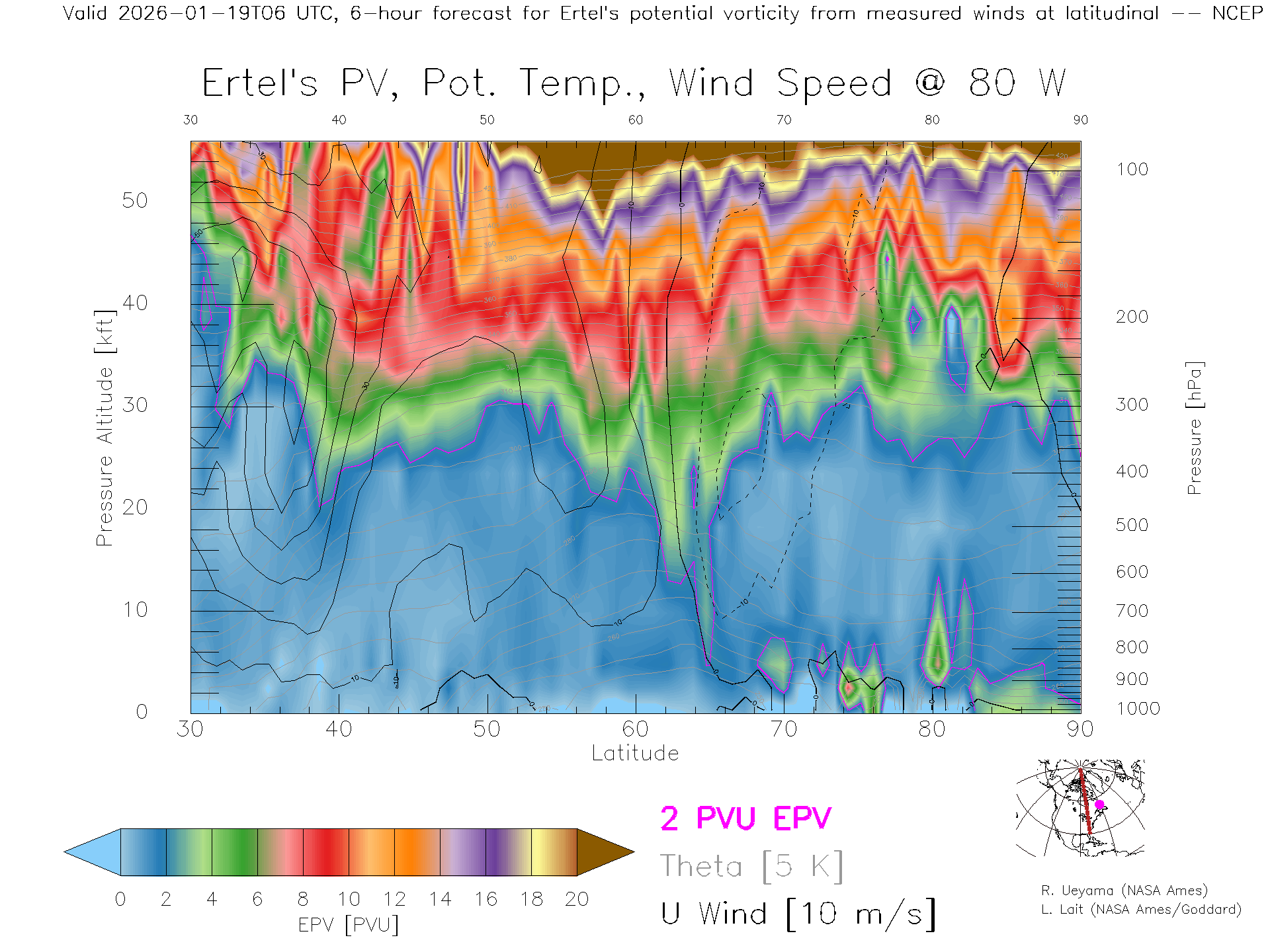 NCEP GFS Forecast PV X-Section (80 W)