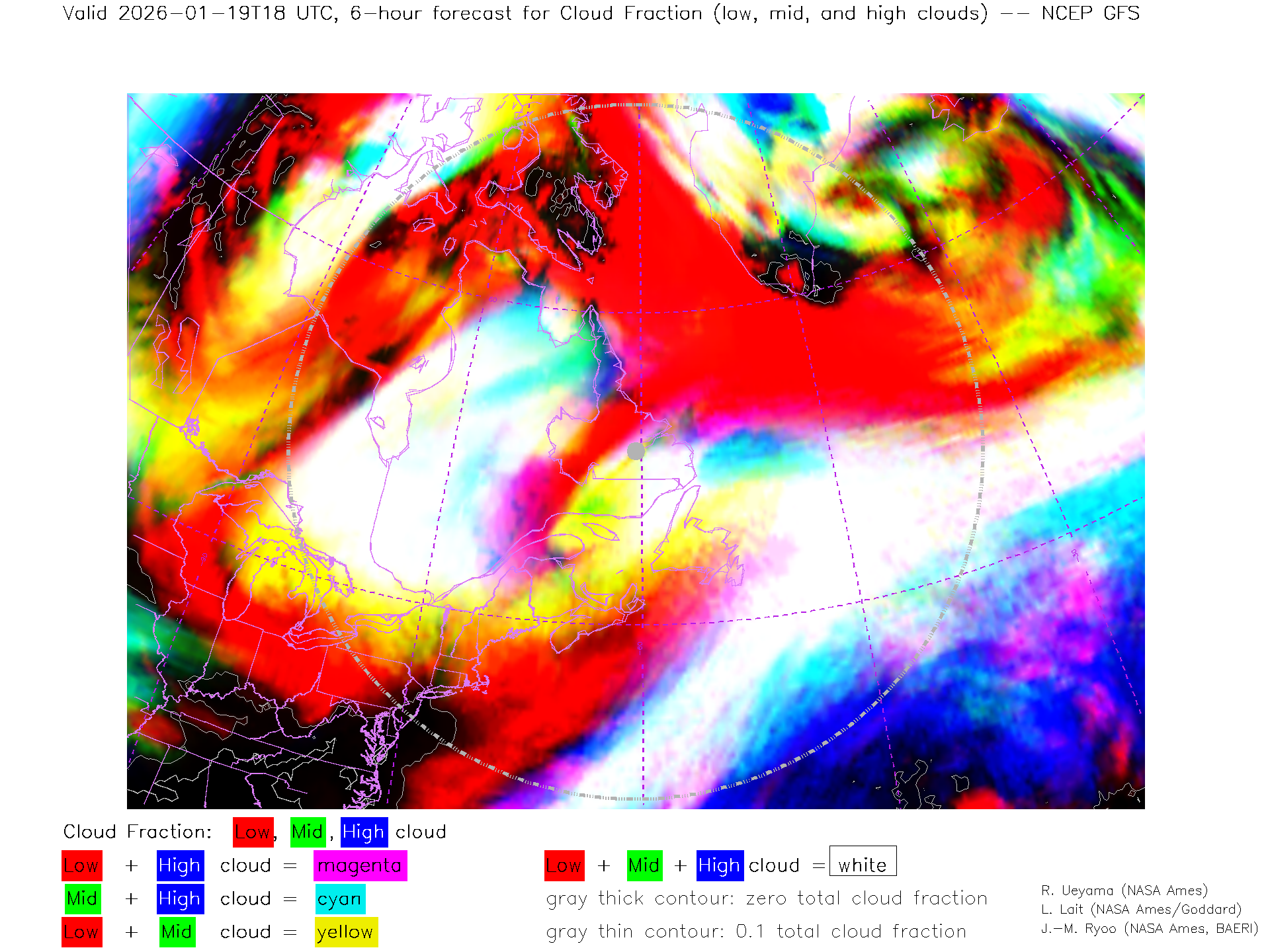 NCEP GFS Forecast Low-, Mid- and High-level Cloud Fraction