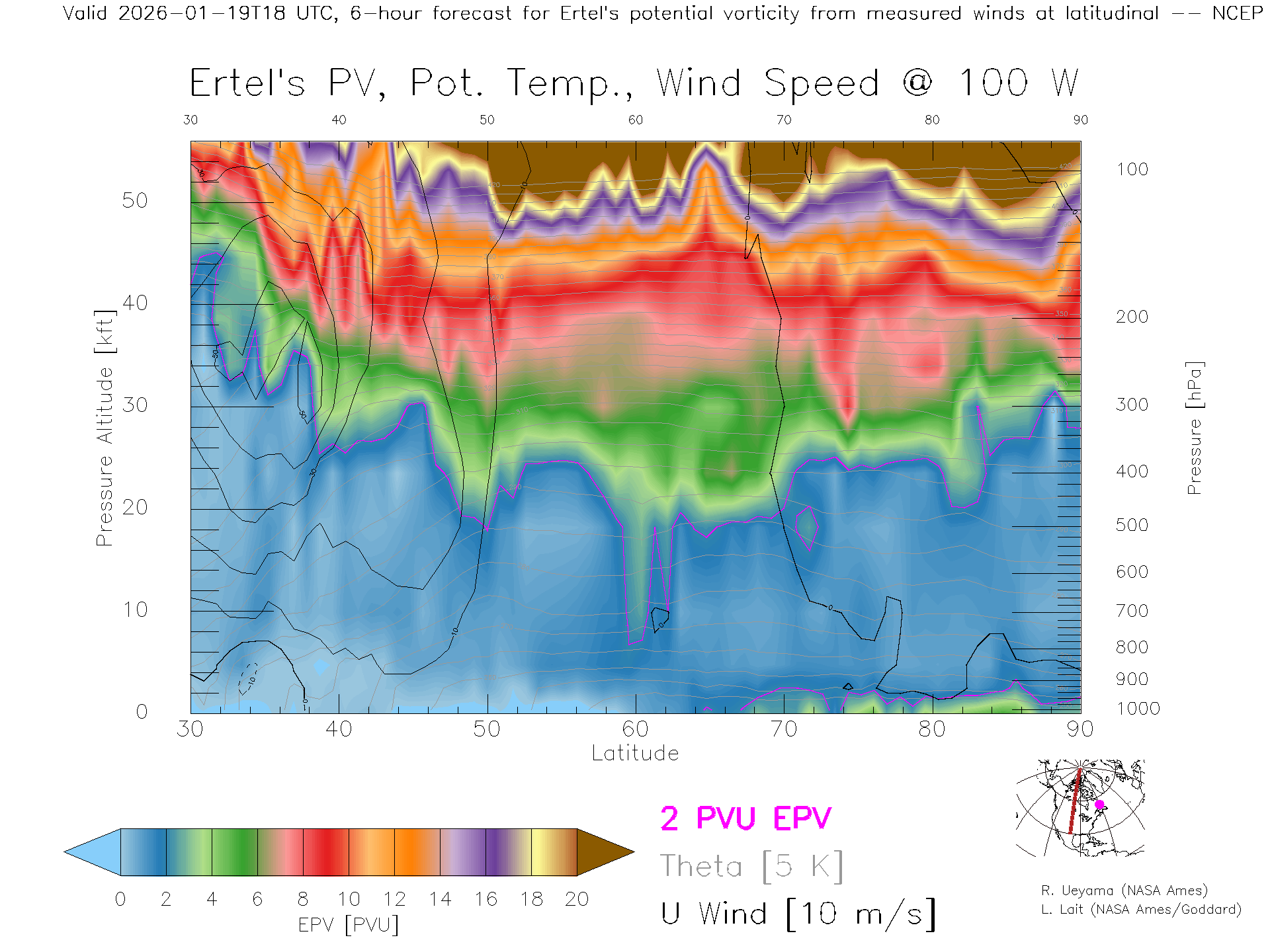 NCEP GFS Forecast PV X-Section (100 W)