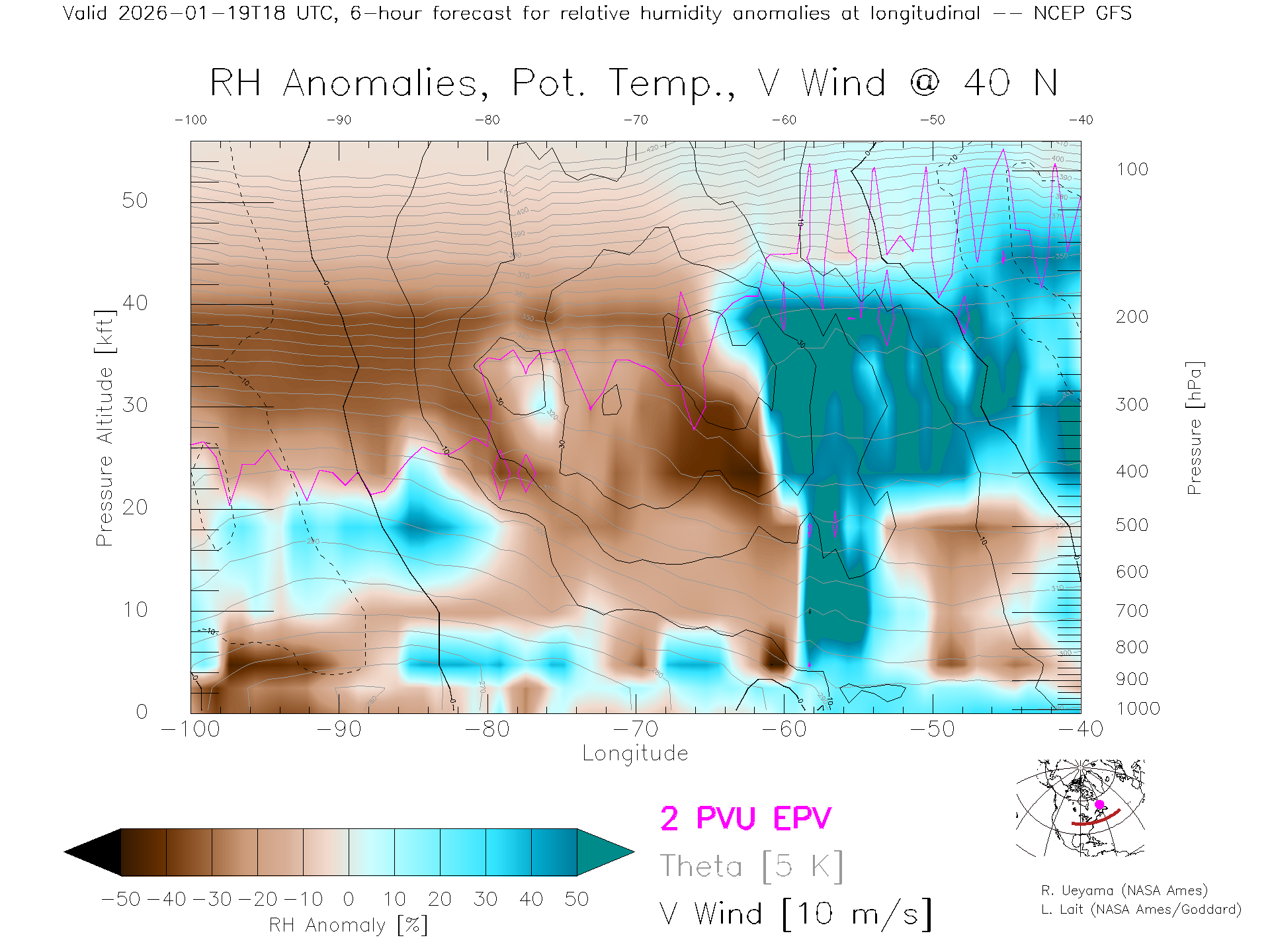 NCEP GFS Forecast Rel. Hum. X-Section (40 N)