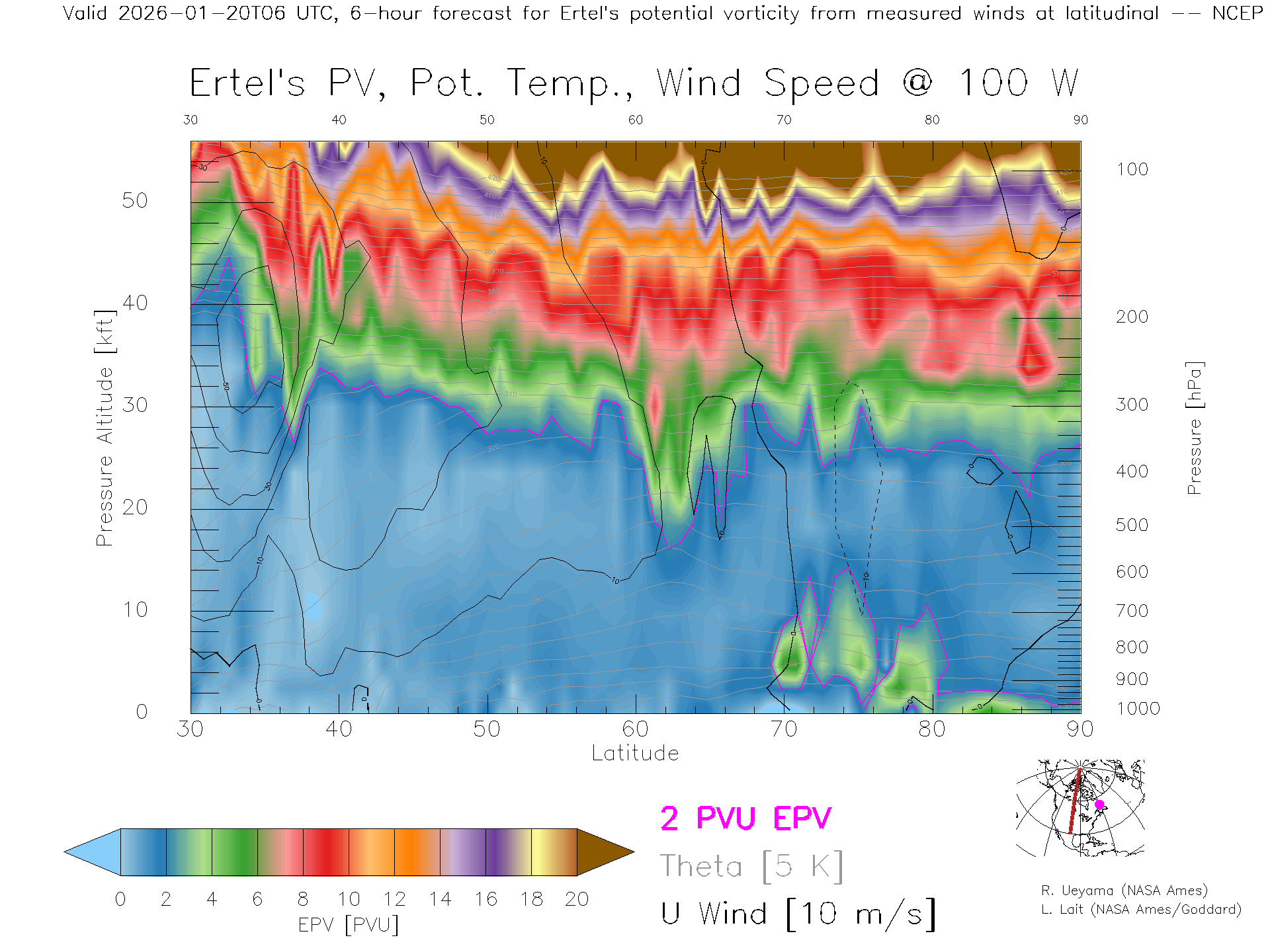 NCEP GFS Forecast PV X-Section (100 W)