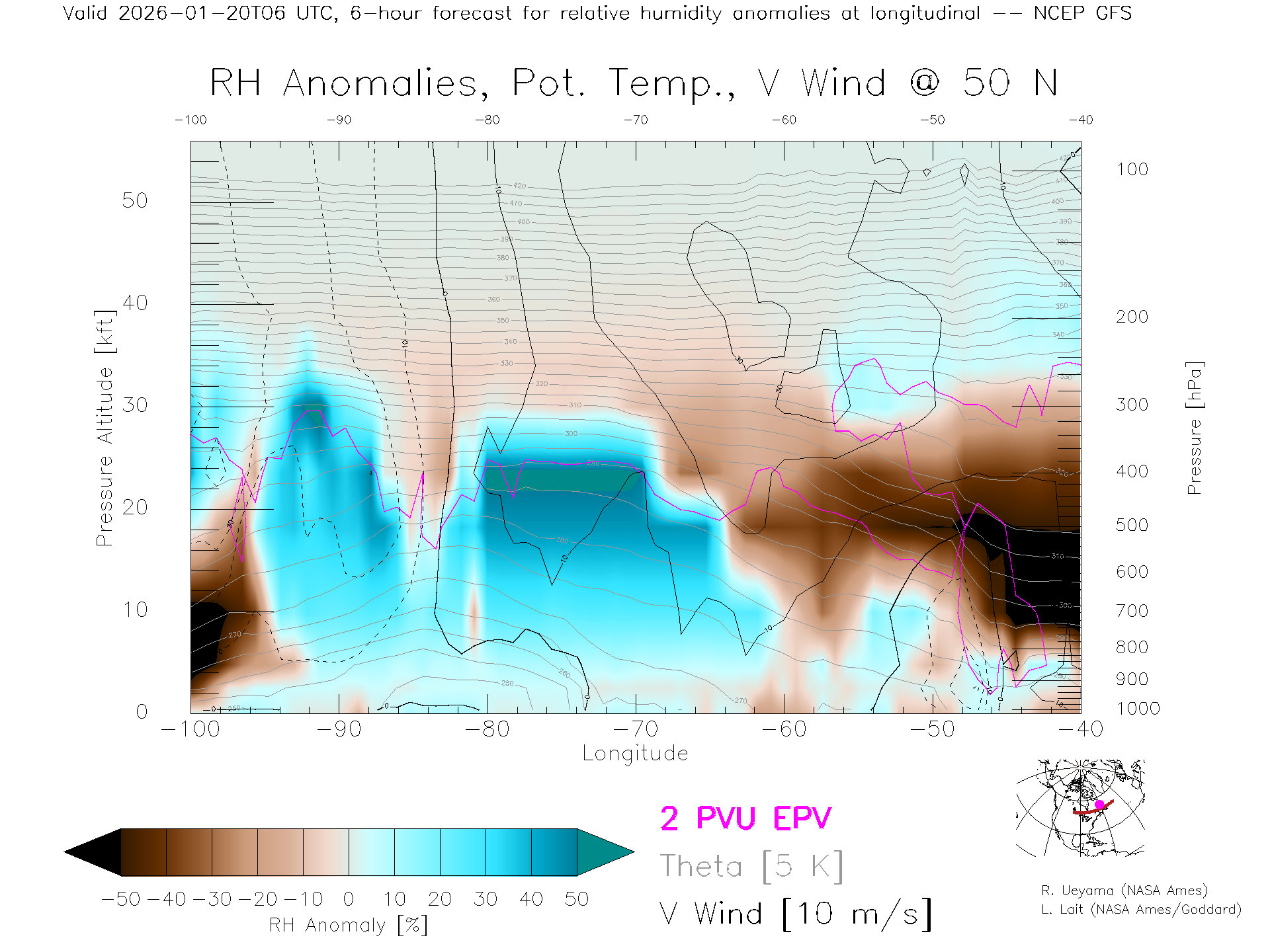 NCEP GFS Forecast Rel. Hum. X-Section (50 N)