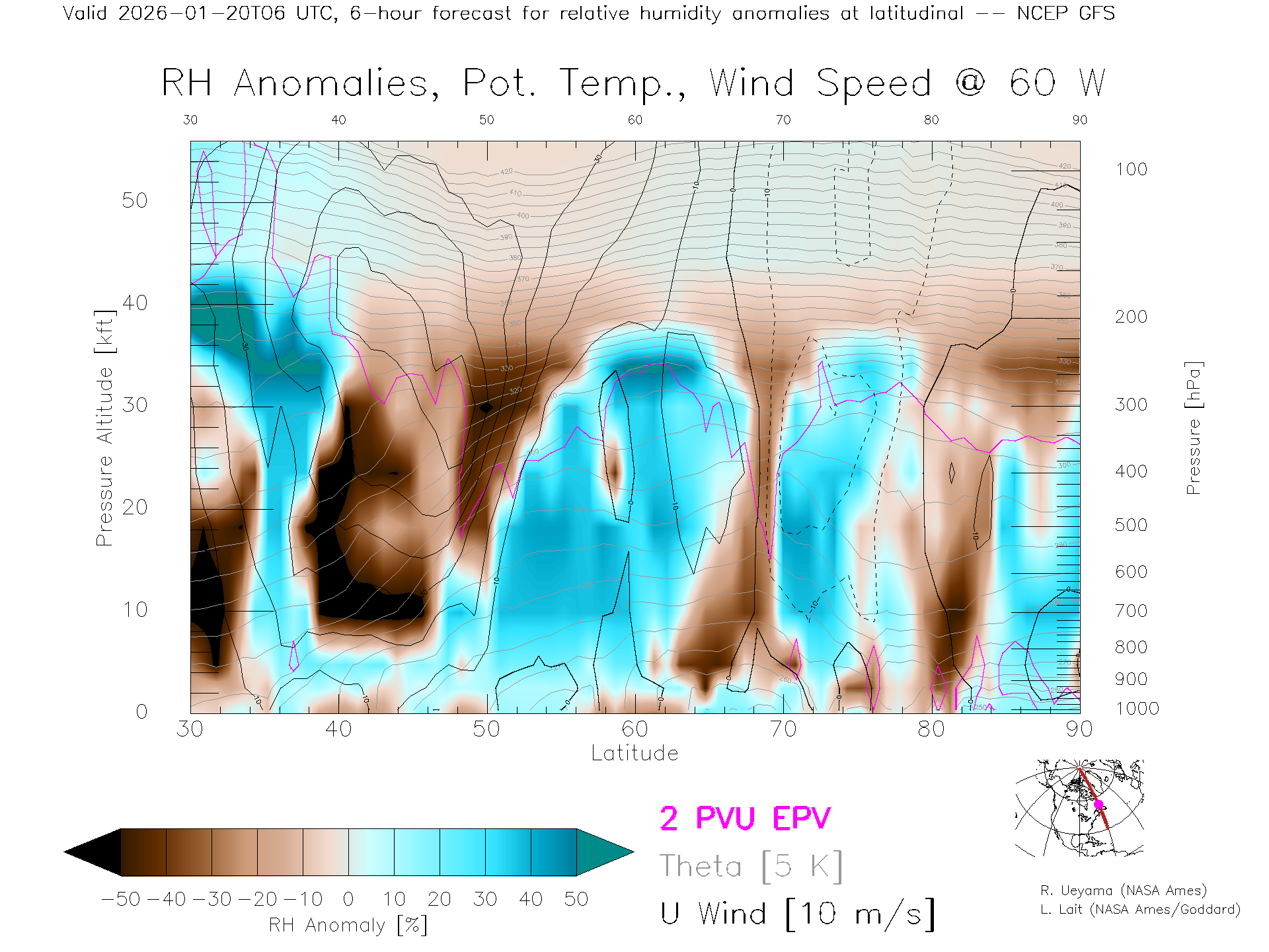 NCEP GFS Forecast Rel. Hum. X-Section (60 W)