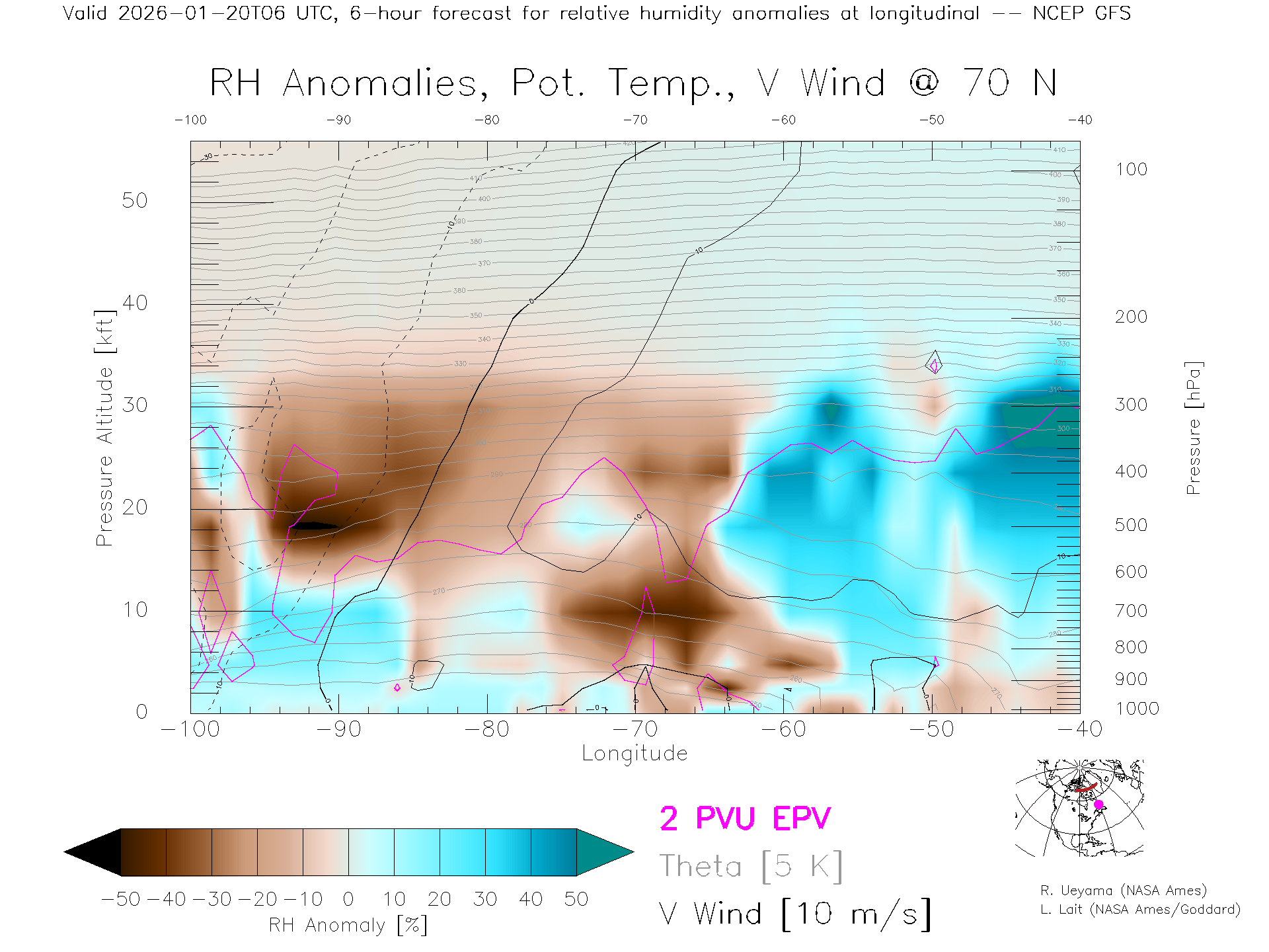 NCEP GFS Forecast Rel. Hum. X-Section (70 N)