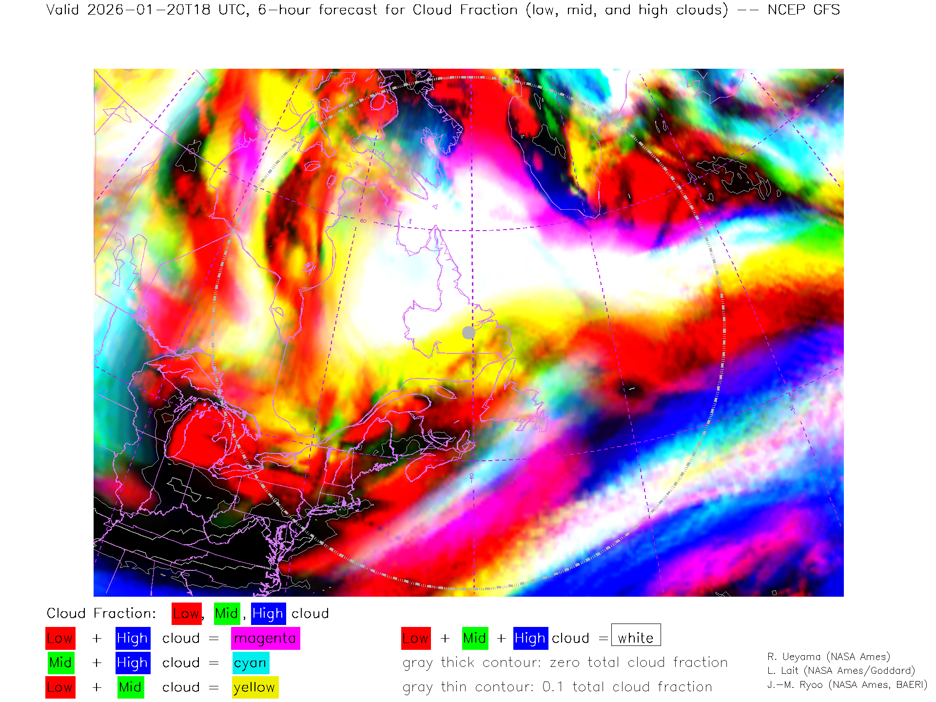 NCEP GFS Forecast Low-, Mid- and High-level Cloud Fraction