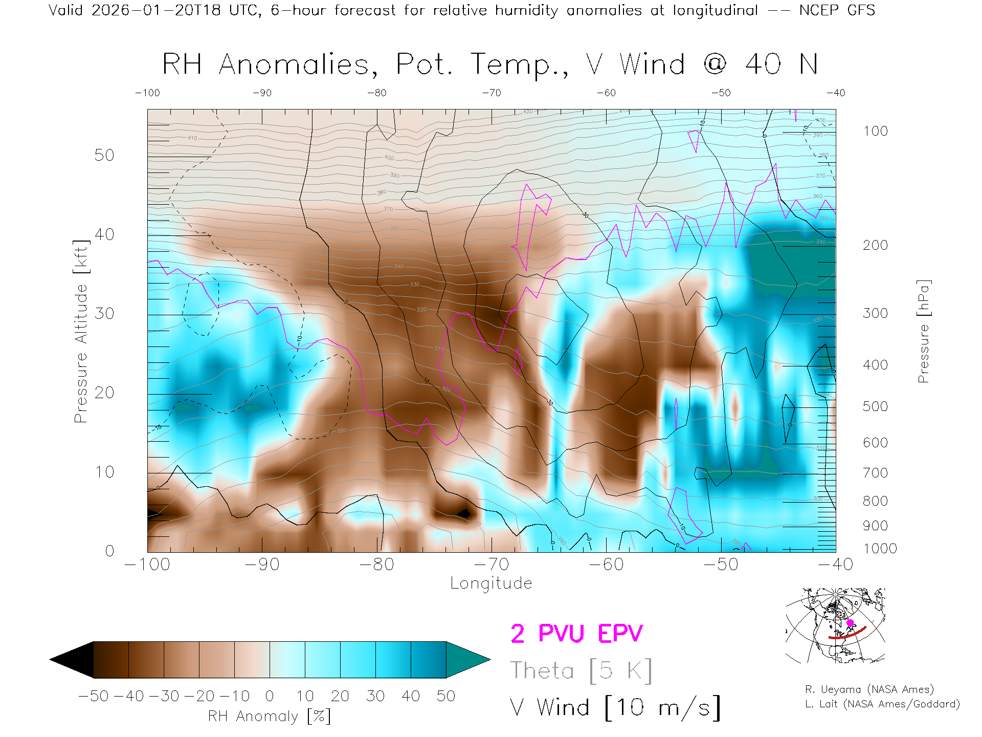 NCEP GFS Forecast Rel. Hum. X-Section (40 N)