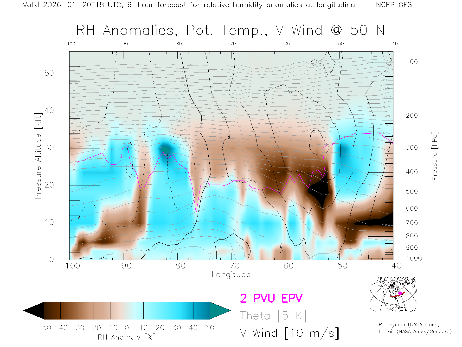 NCEP GFS Forecast Rel. Hum. X-Section (50 N)