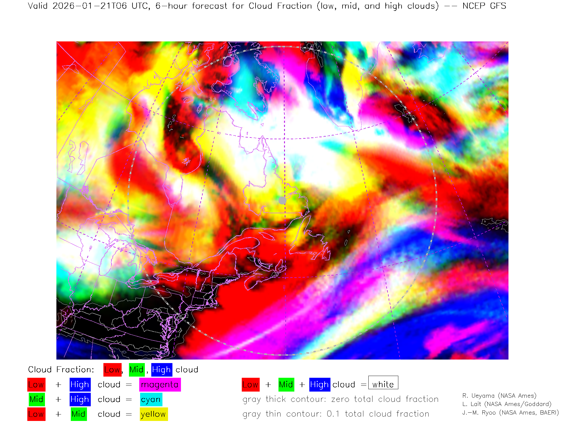 NCEP GFS Forecast Low-, Mid- and High-level Cloud Fraction