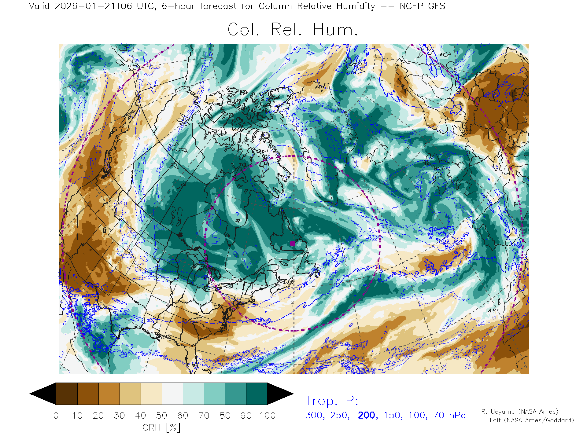NCEP GFS Forecast Column Rel. Humidity