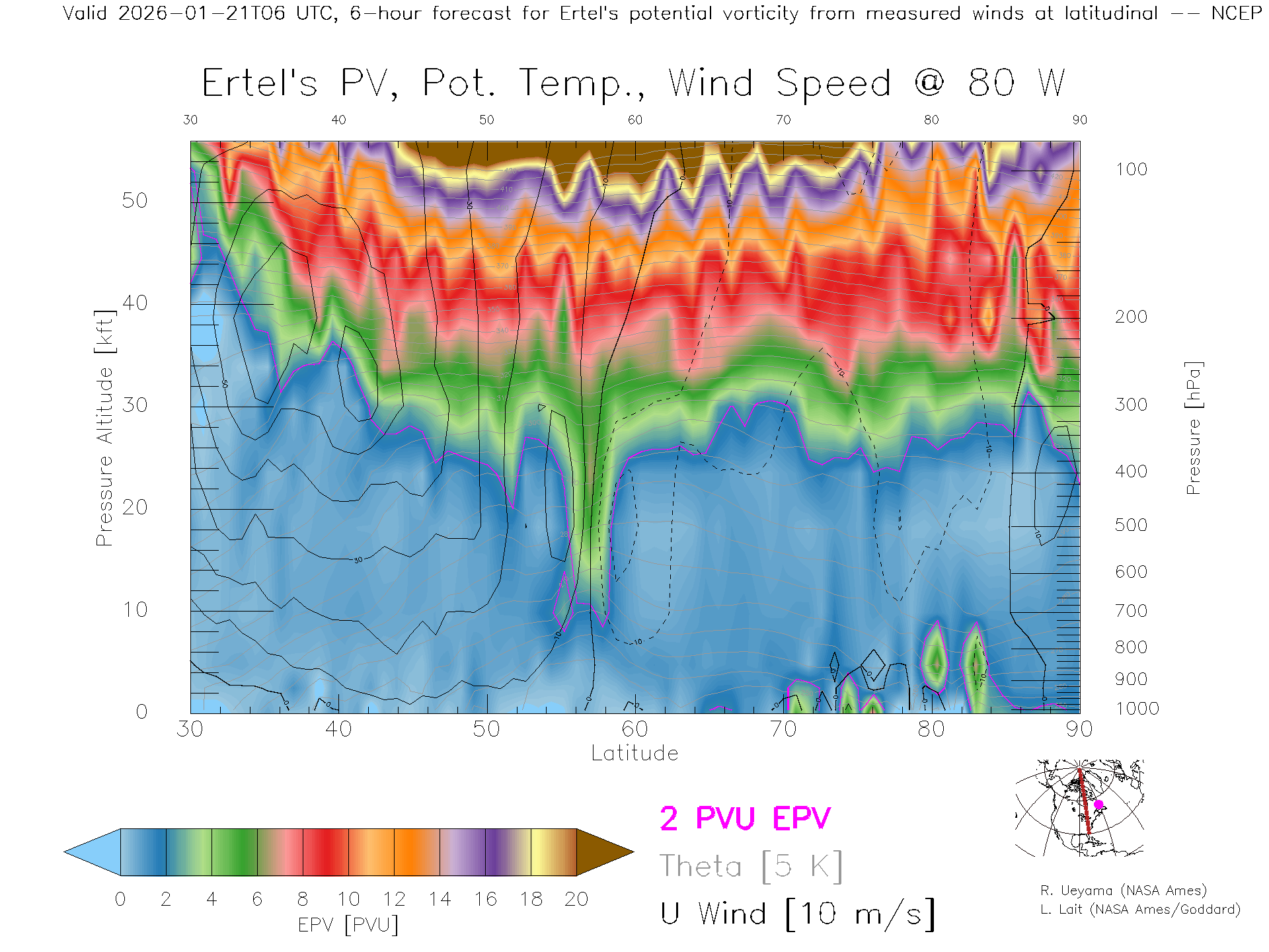 NCEP GFS Forecast PV X-Section (80 W)